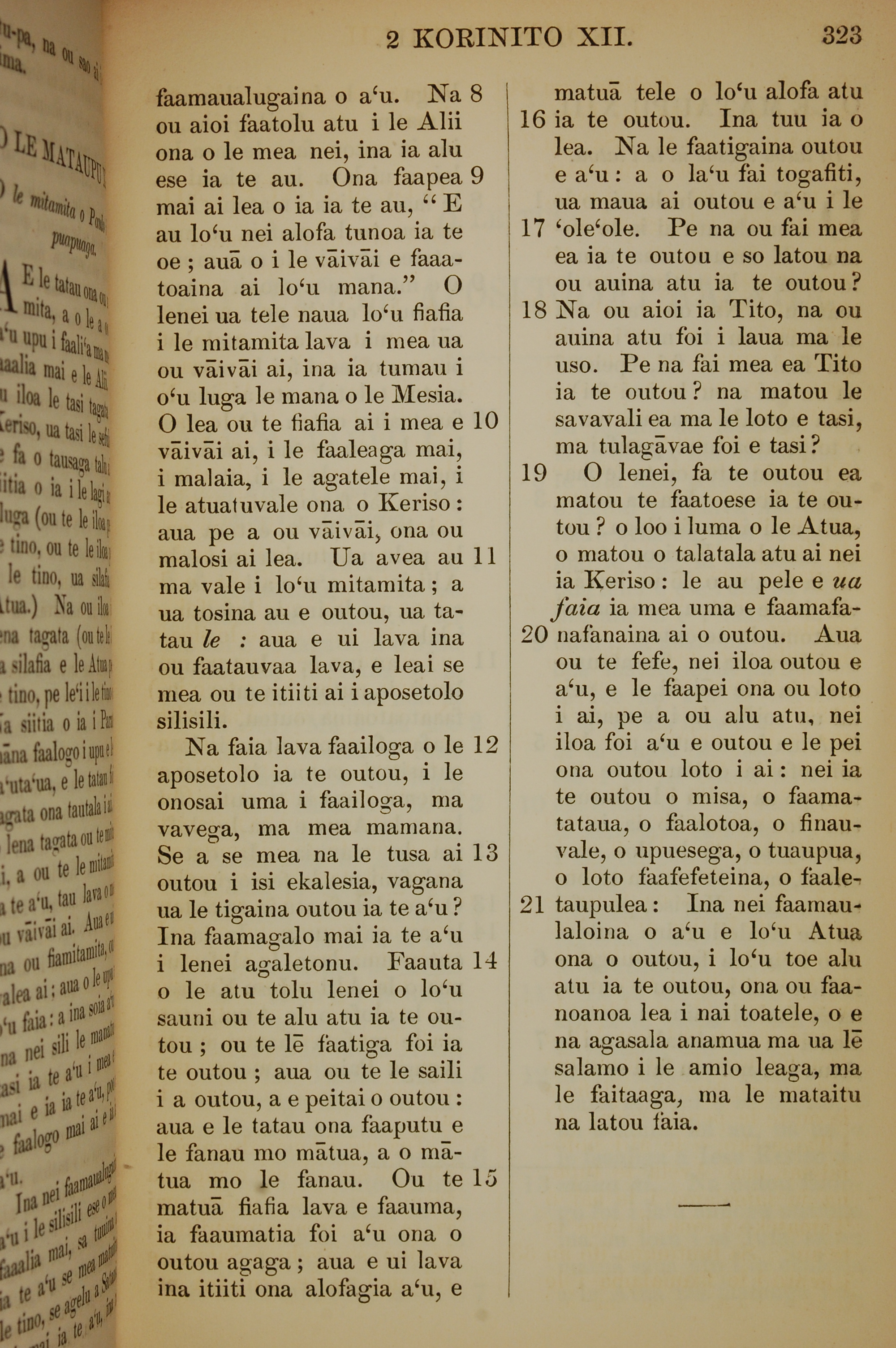 1849年萨摩亚语新约全书 哥林多后书 12 章 8 节到 12 章 21 节