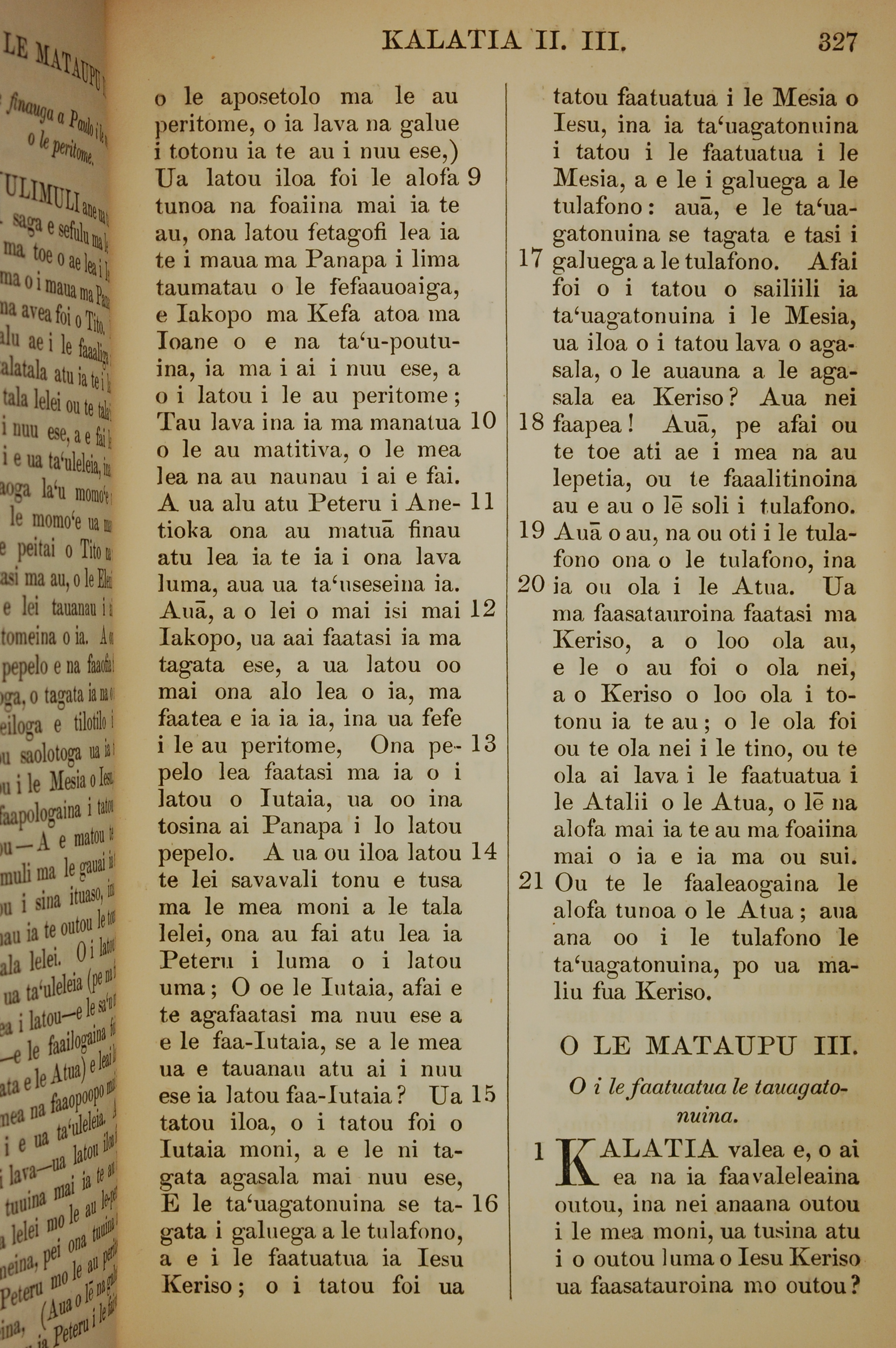 1849年萨摩亚语新约全书 加拉太书 2 章 9 节到 3 章 1 节