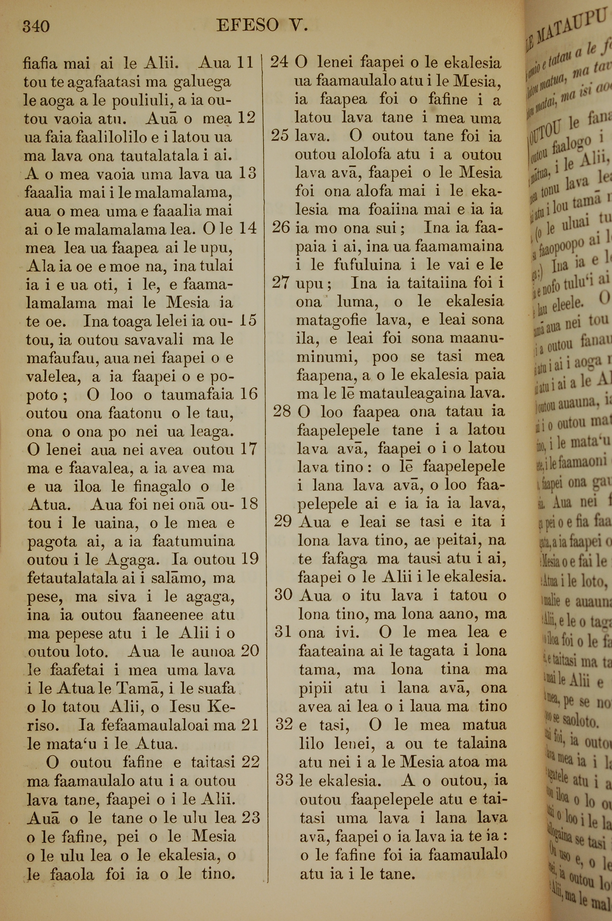1849年萨摩亚语新约全书 以弗所书 5 章 11 节到 5 章 33 节
