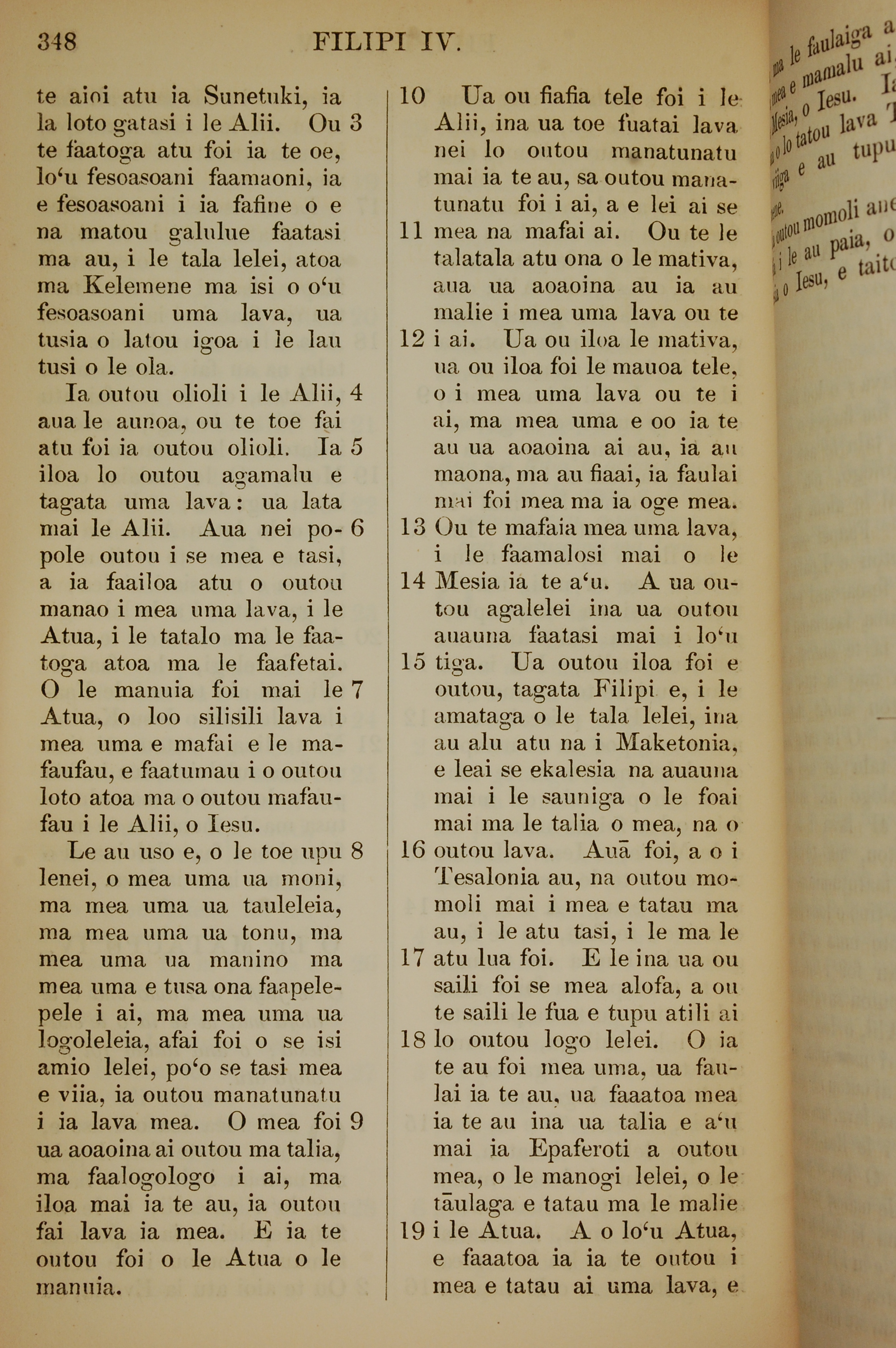 1849年萨摩亚语新约全书 腓立比书 4 章 3 节到 4 章 19 节