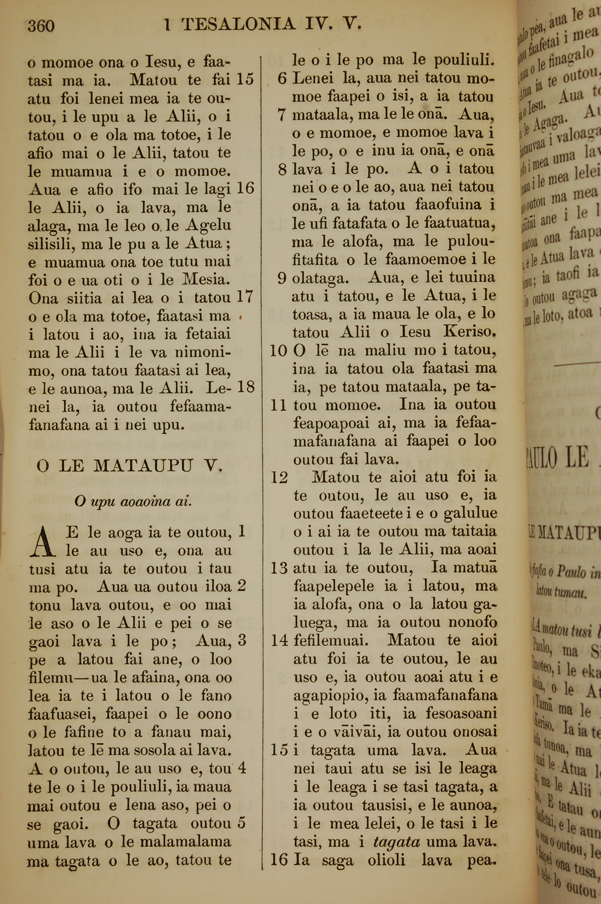 1849年萨摩亚语新约全书 帖撒罗尼迦前书 4 章 15 节到 5 章 16 节