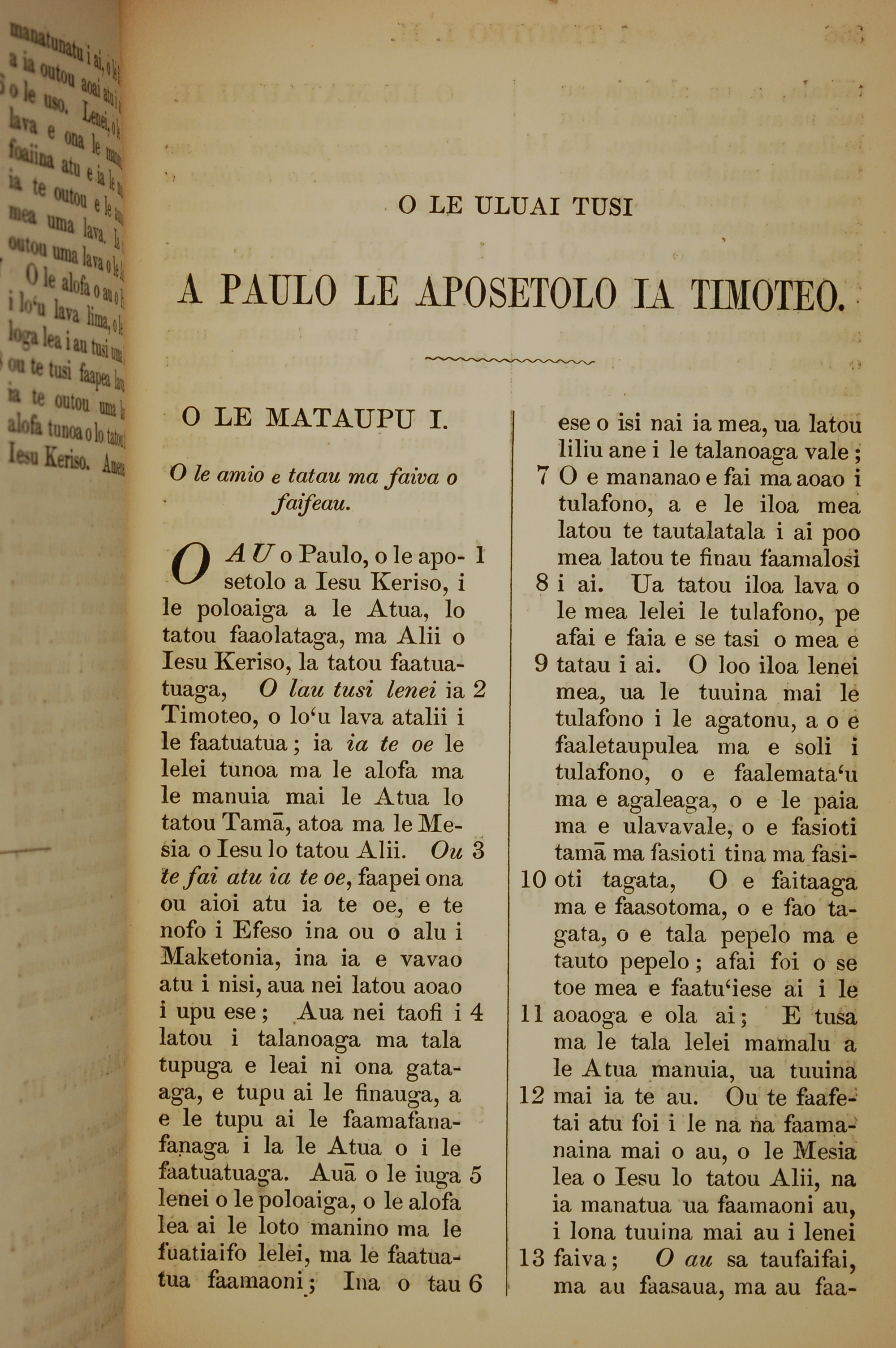 1849年萨摩亚语新约全书 提摩太前书 1 章 1 节到 1 章 13 节