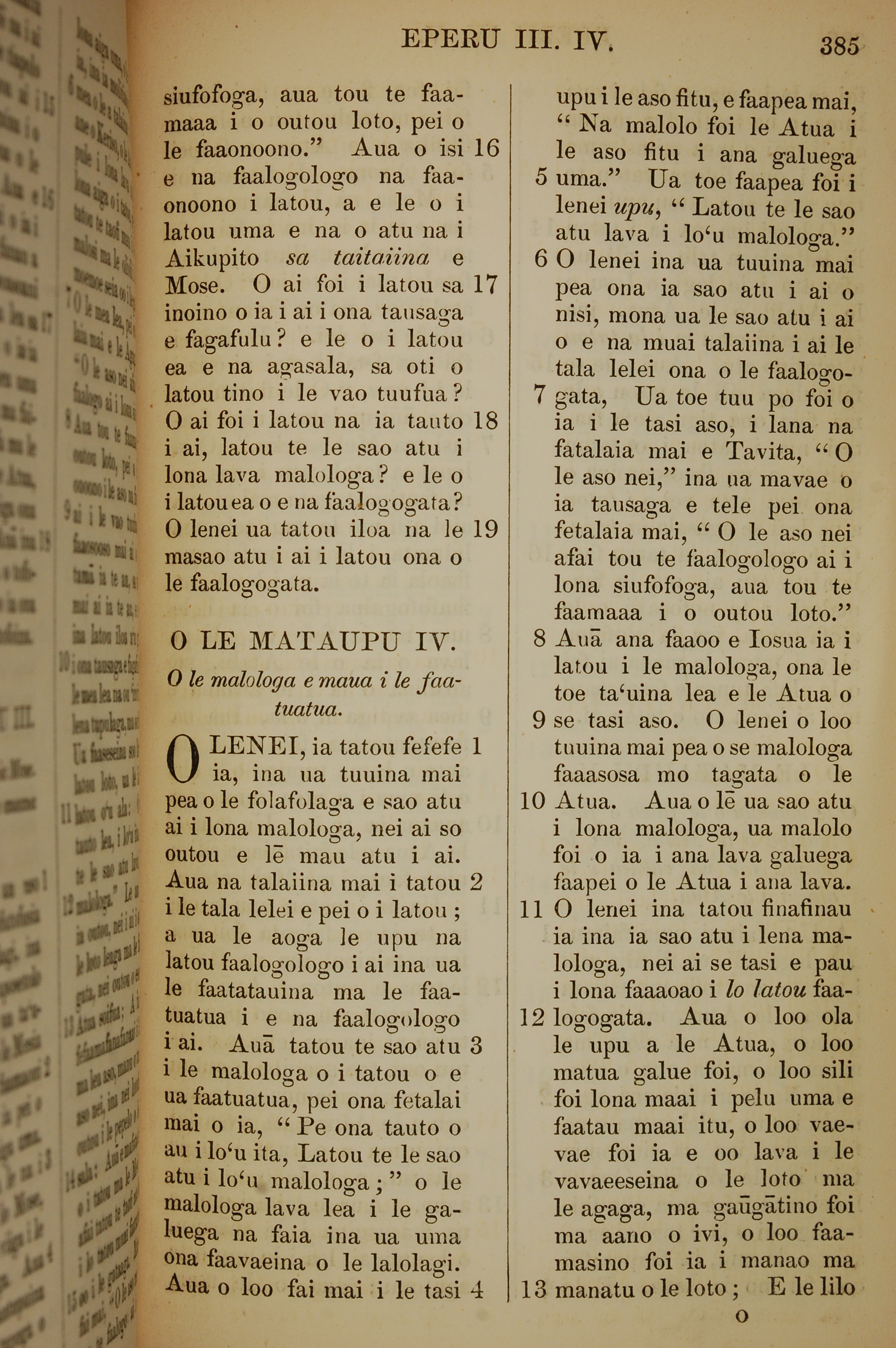 1849年萨摩亚语新约全书 希伯来书 3 章 16 节到 4 章 13 节