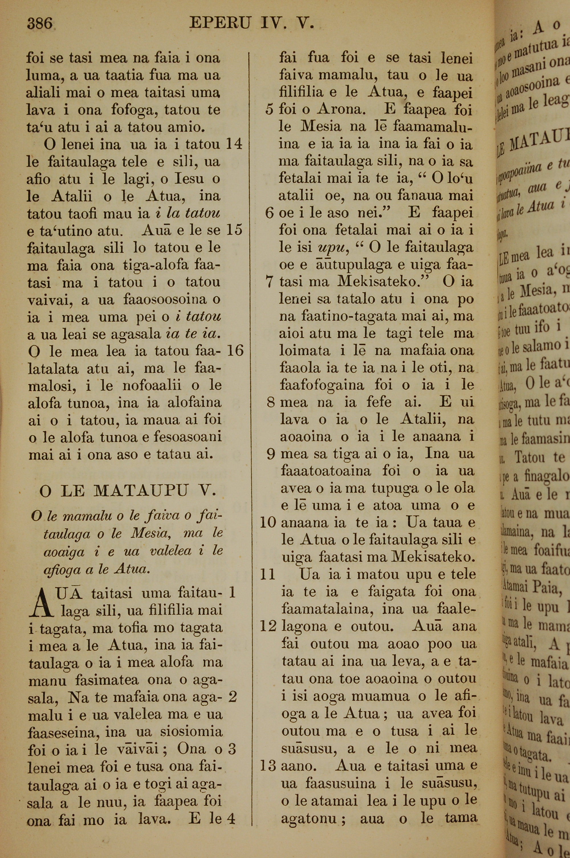 1849年萨摩亚语新约全书 希伯来书 4 章 14 节到 5 章 13 节