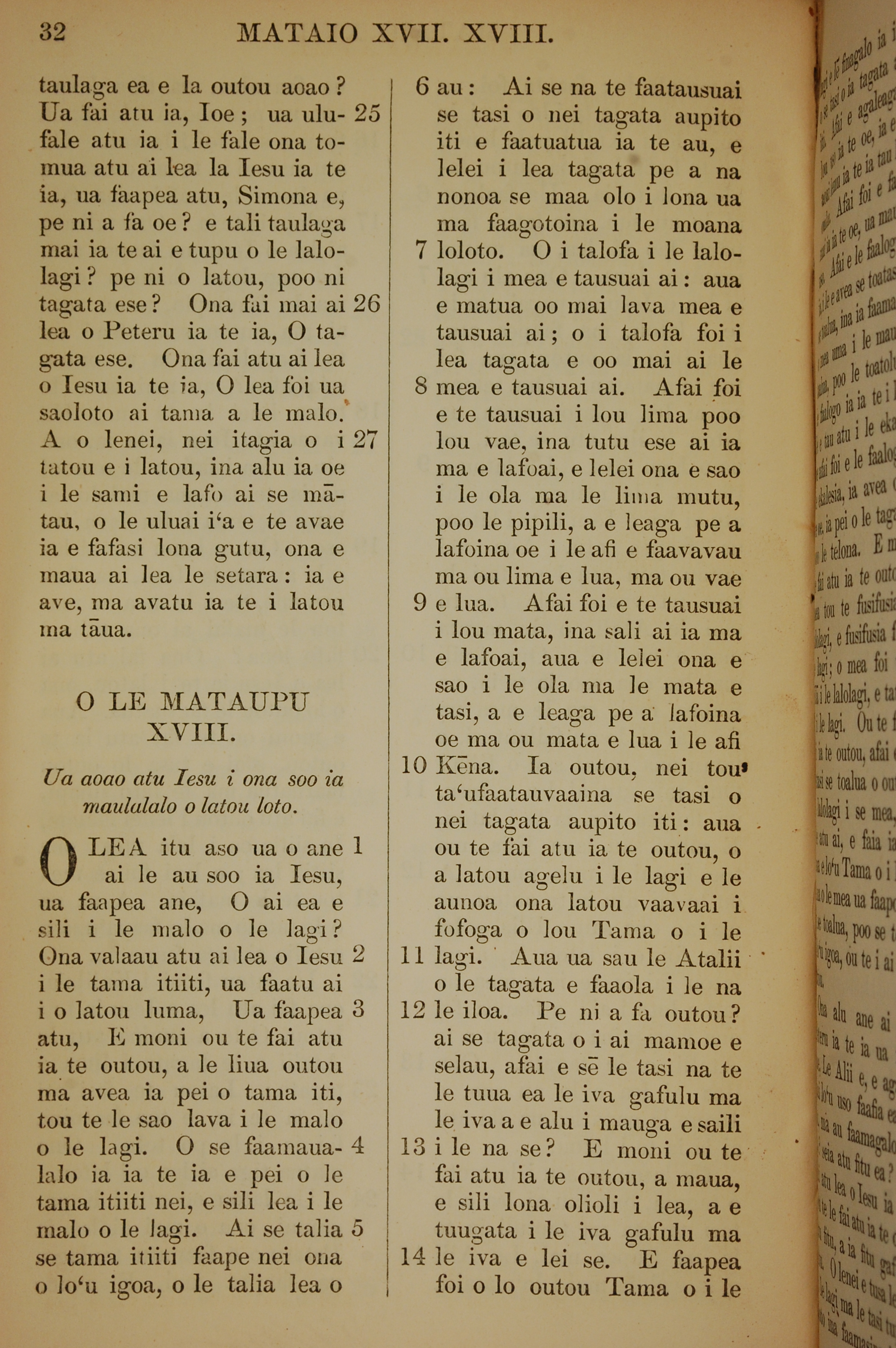 1849年萨摩亚语新约全书 马太福音 17 章 25 节到 18 章 14 节