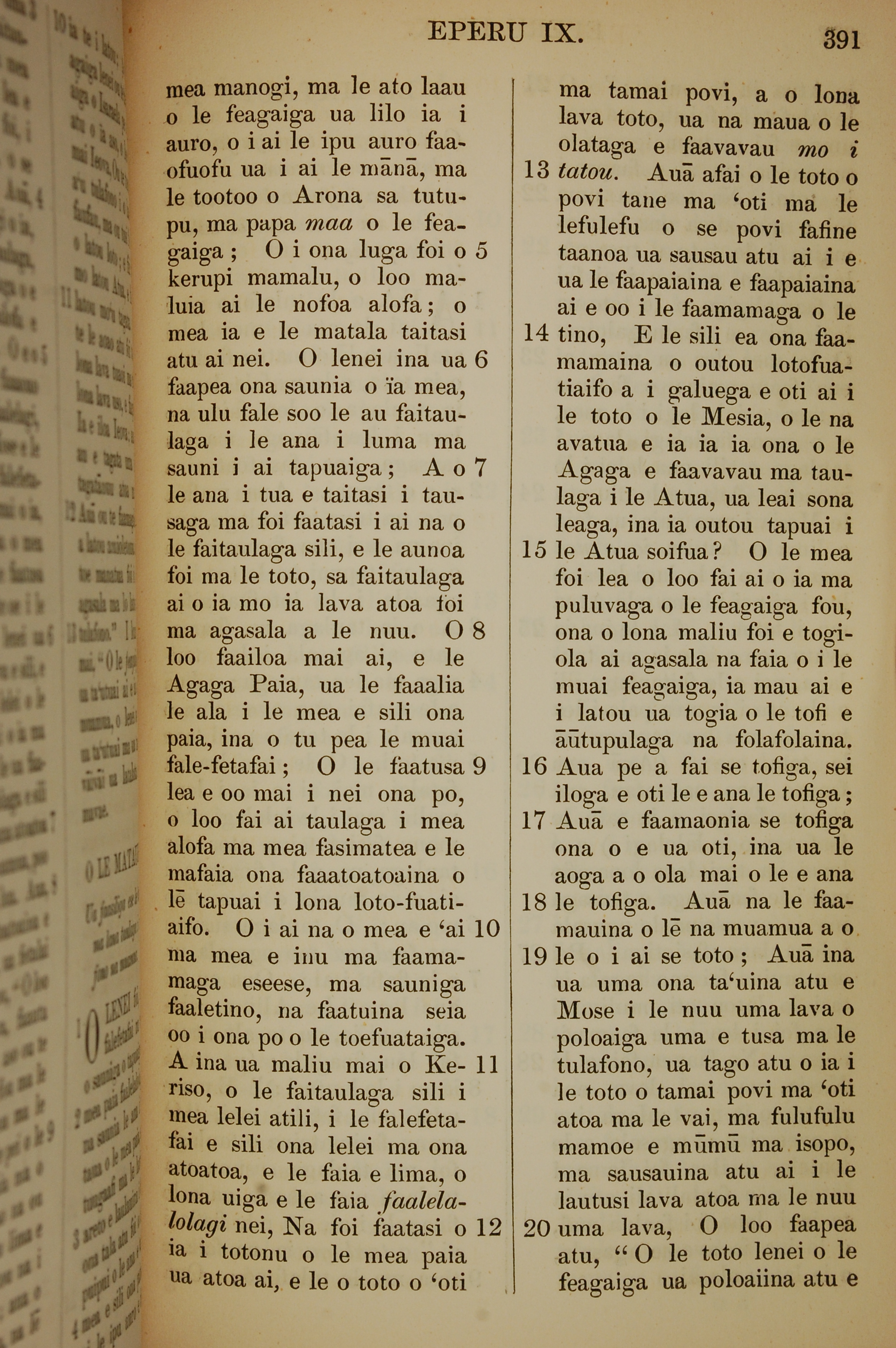 1849年萨摩亚语新约全书 希伯来书 9 章 5 节到 9 章 20 节