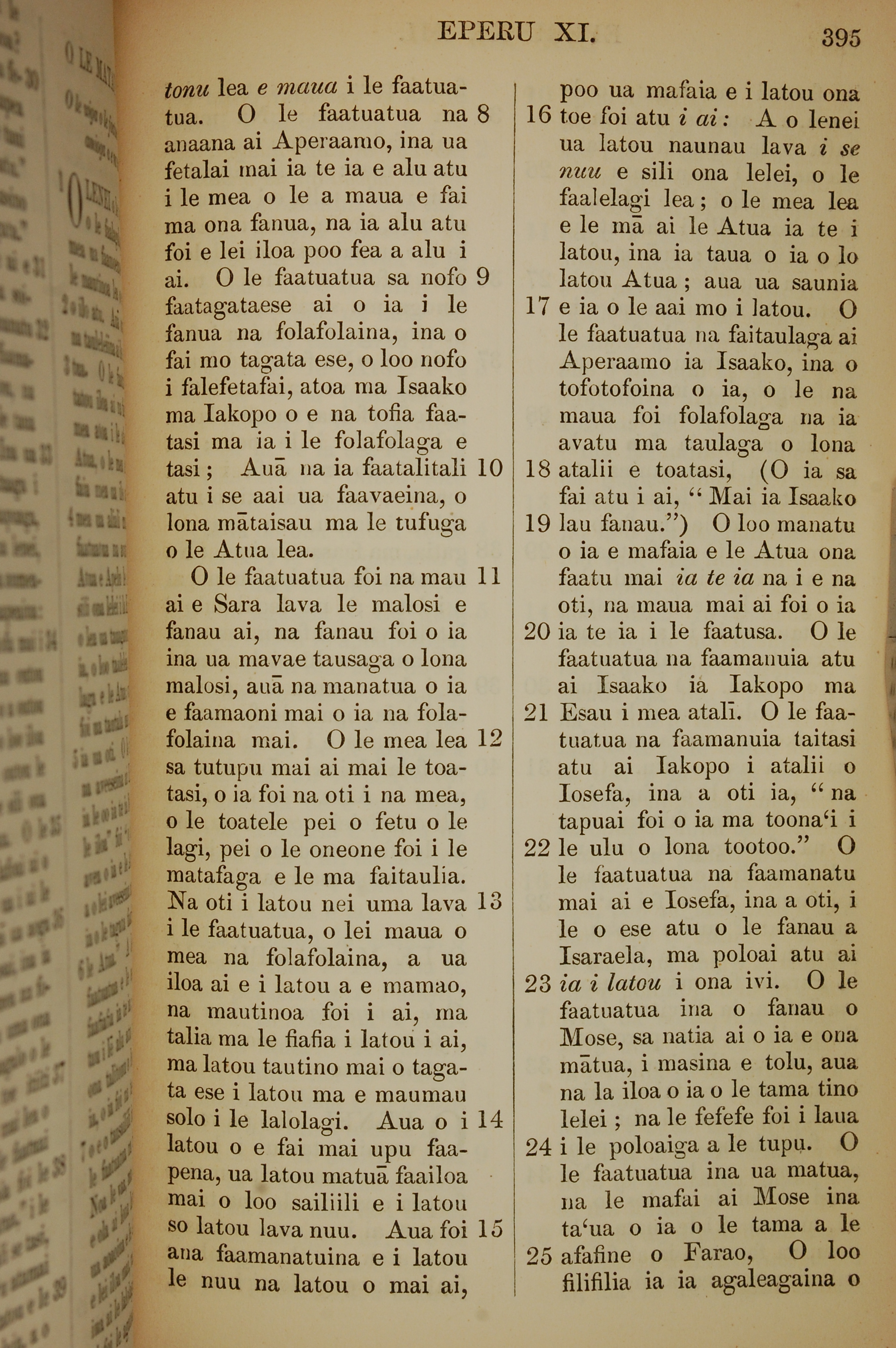 1849年萨摩亚语新约全书 希伯来书 11 章 8 节到 11 章 25 节