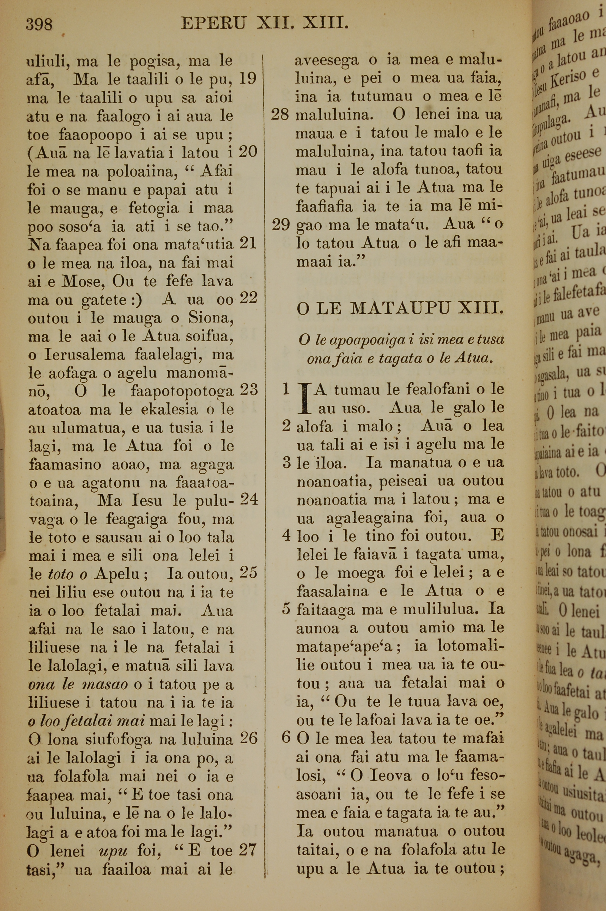 1849年萨摩亚语新约全书 希伯来书 12 章 19 节到 13 章 7 节