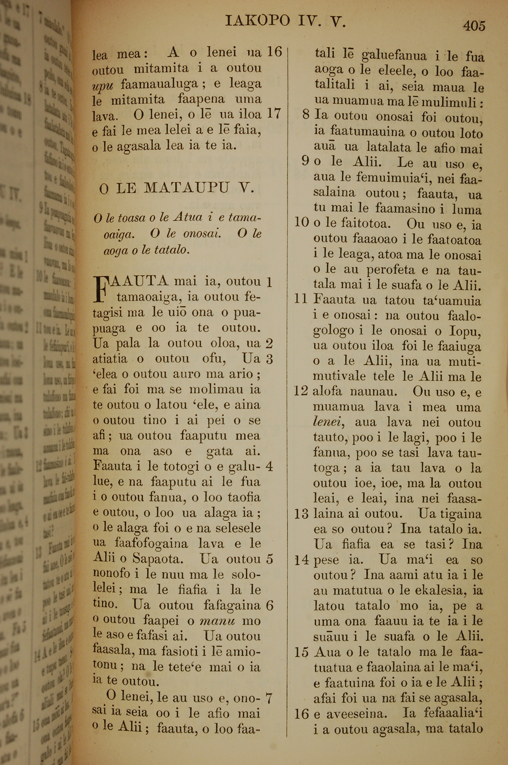 1849年萨摩亚语新约全书 雅各书 4 章 16 节到 5 章 16 节