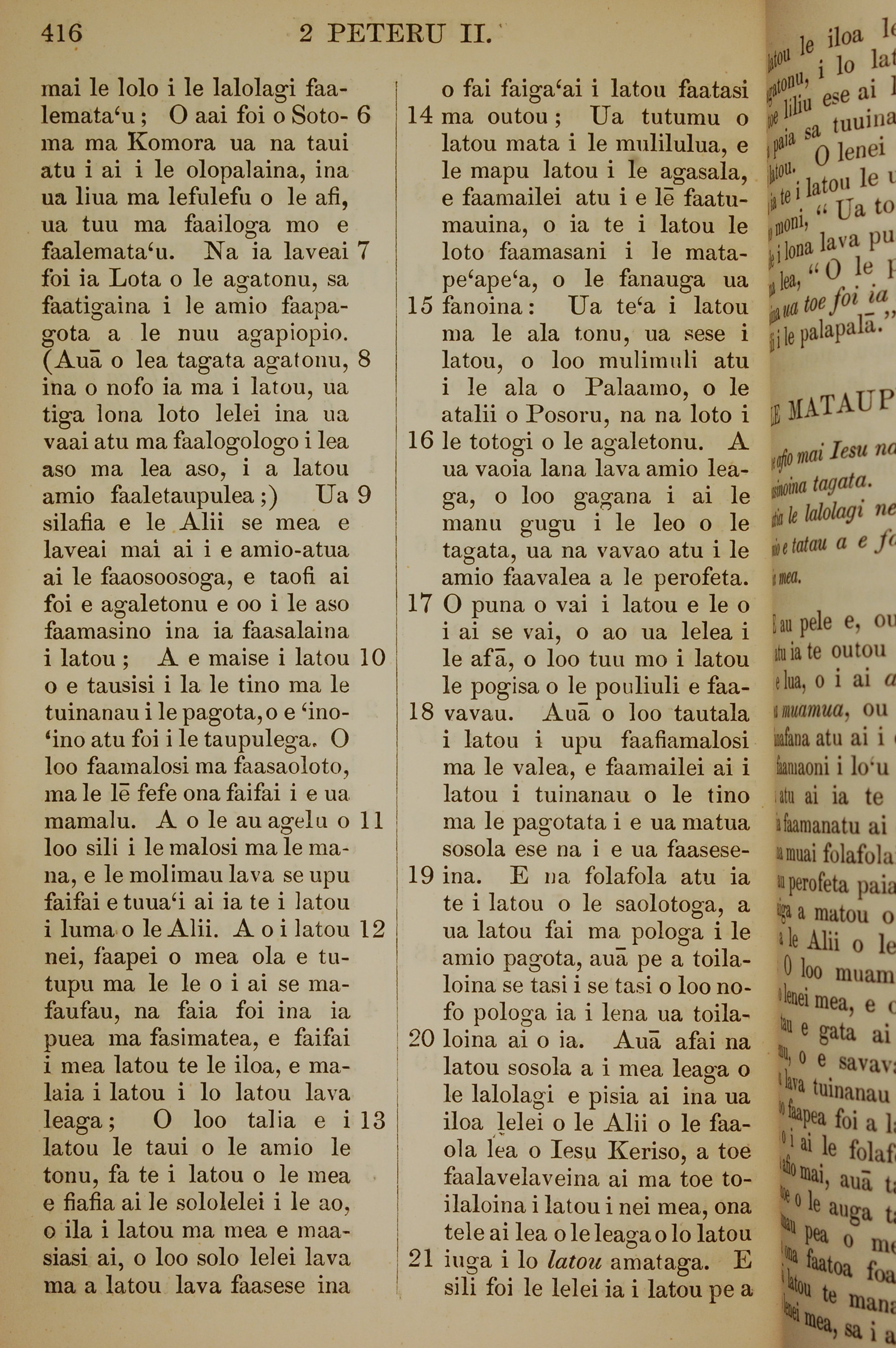 1849年萨摩亚语新约全书 彼得后书 2 章 6 节到 2 章 21 节
