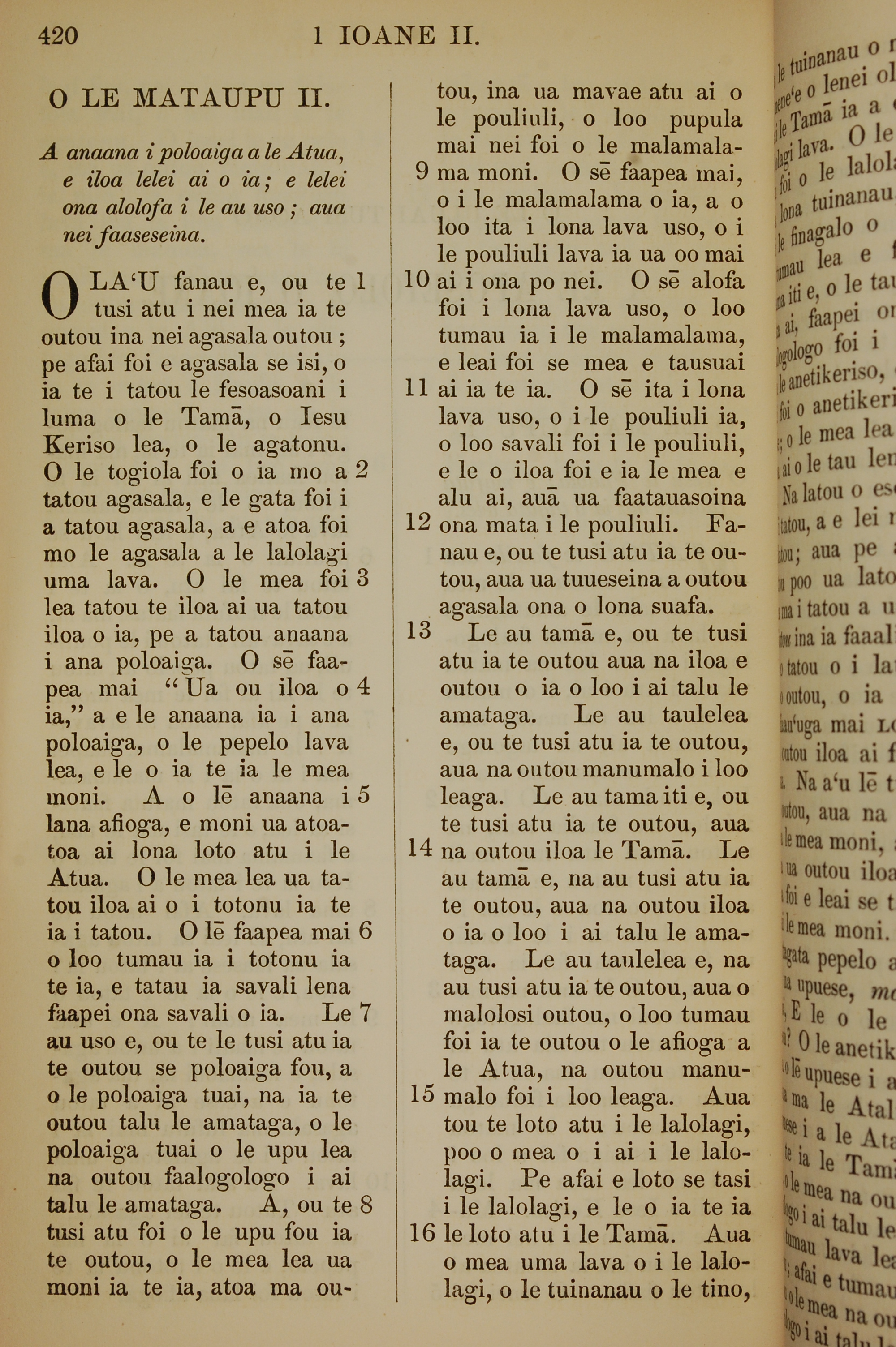 1849年萨摩亚语新约全书 约翰一书 2 章 1 节到 2 章 16 节