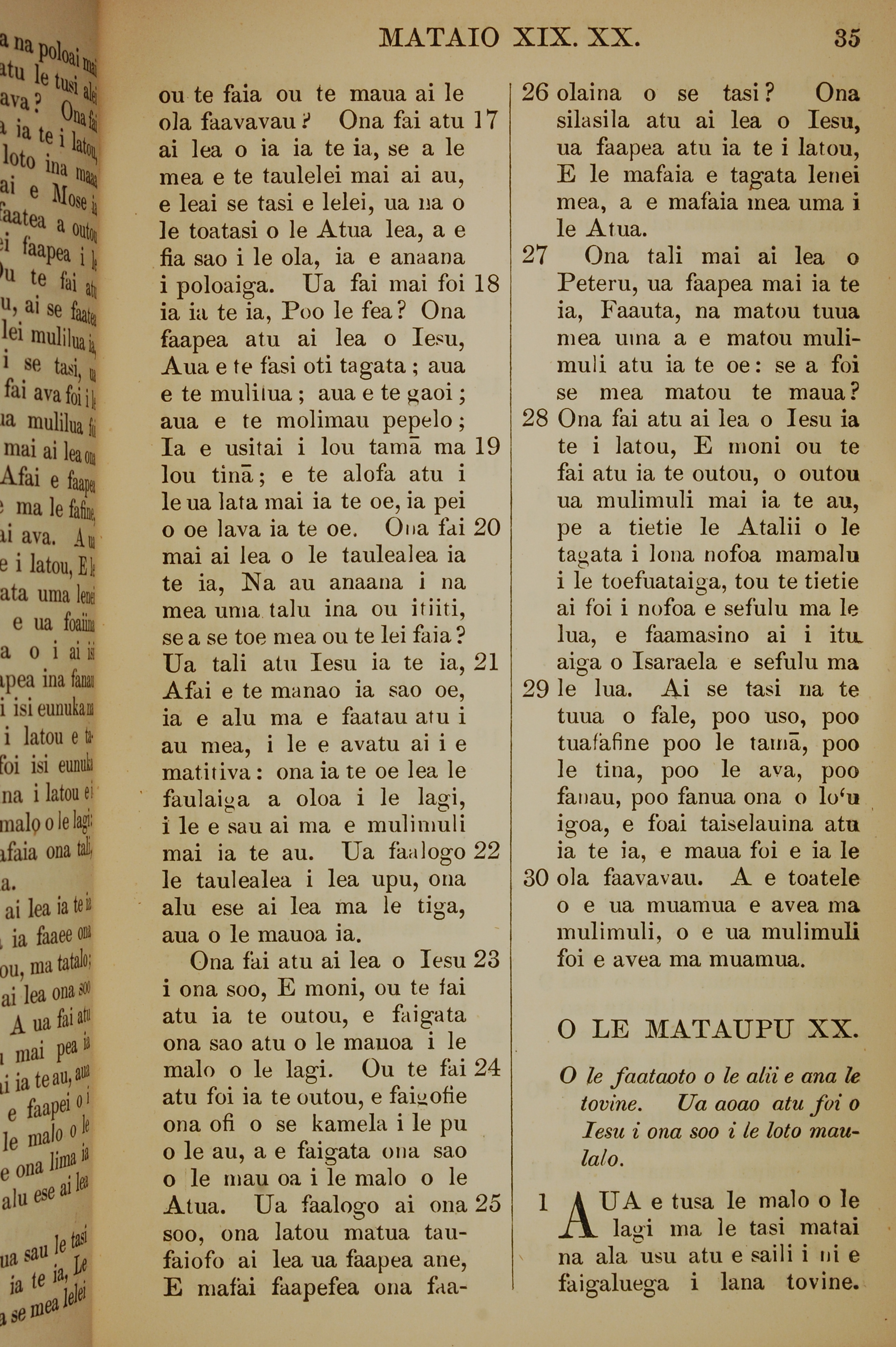 1849年萨摩亚语新约全书 马太福音 19 章 17 节到 20 章 1 节