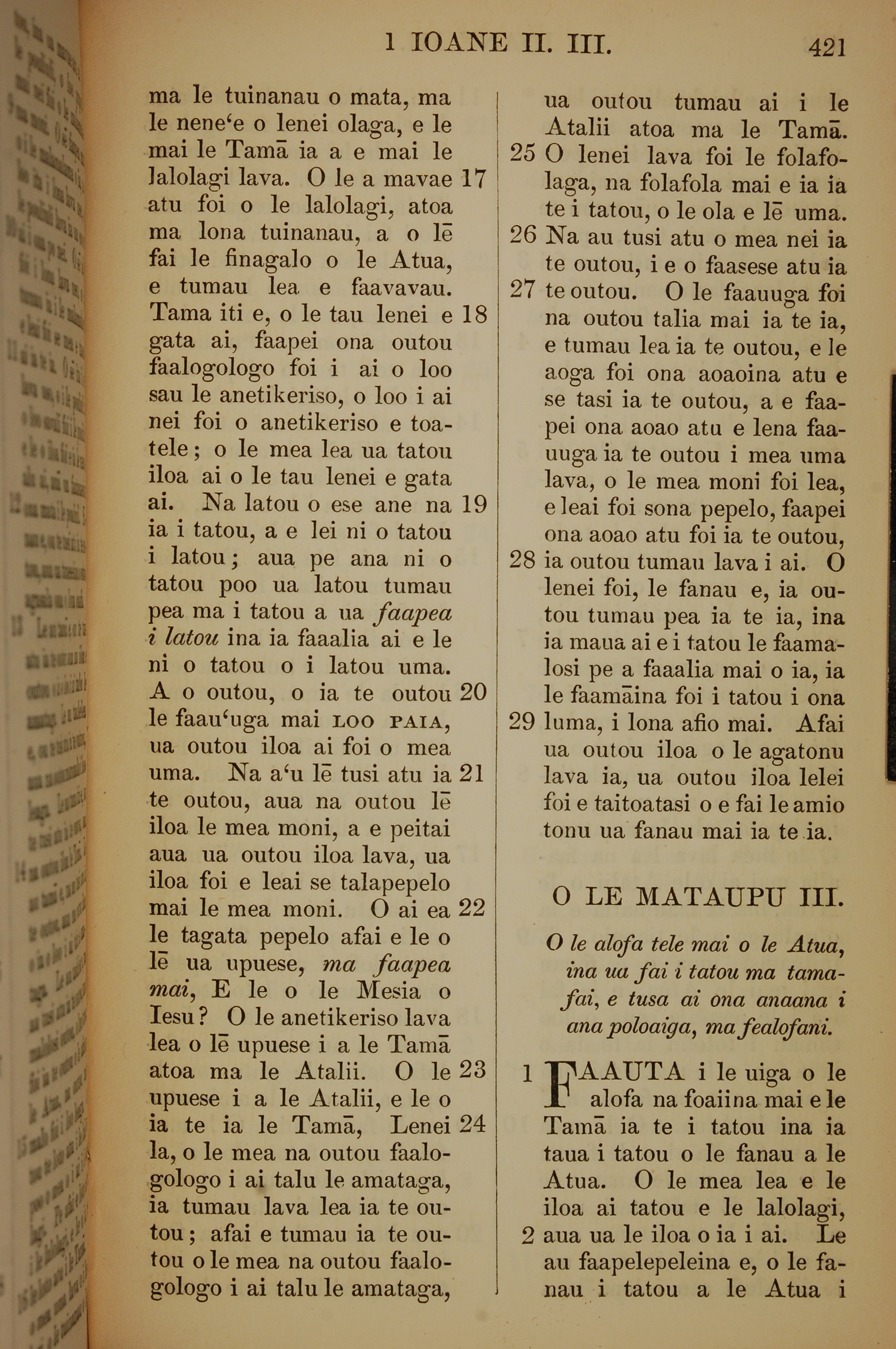 1849年萨摩亚语新约全书 约翰一书 2 章 17 节到 3 章 2 节