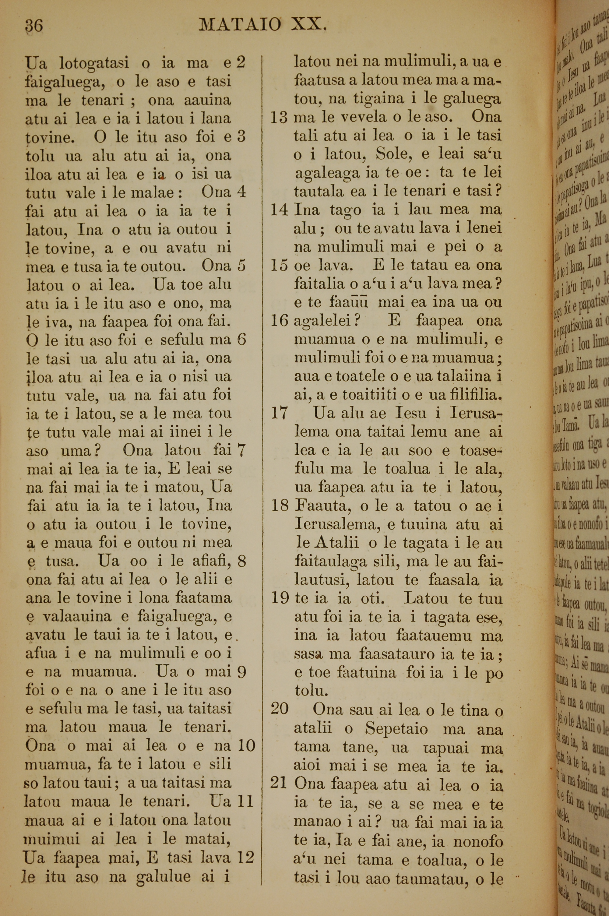 1849年萨摩亚语新约全书 马太福音 20 章 2 节到 20 章 21 节