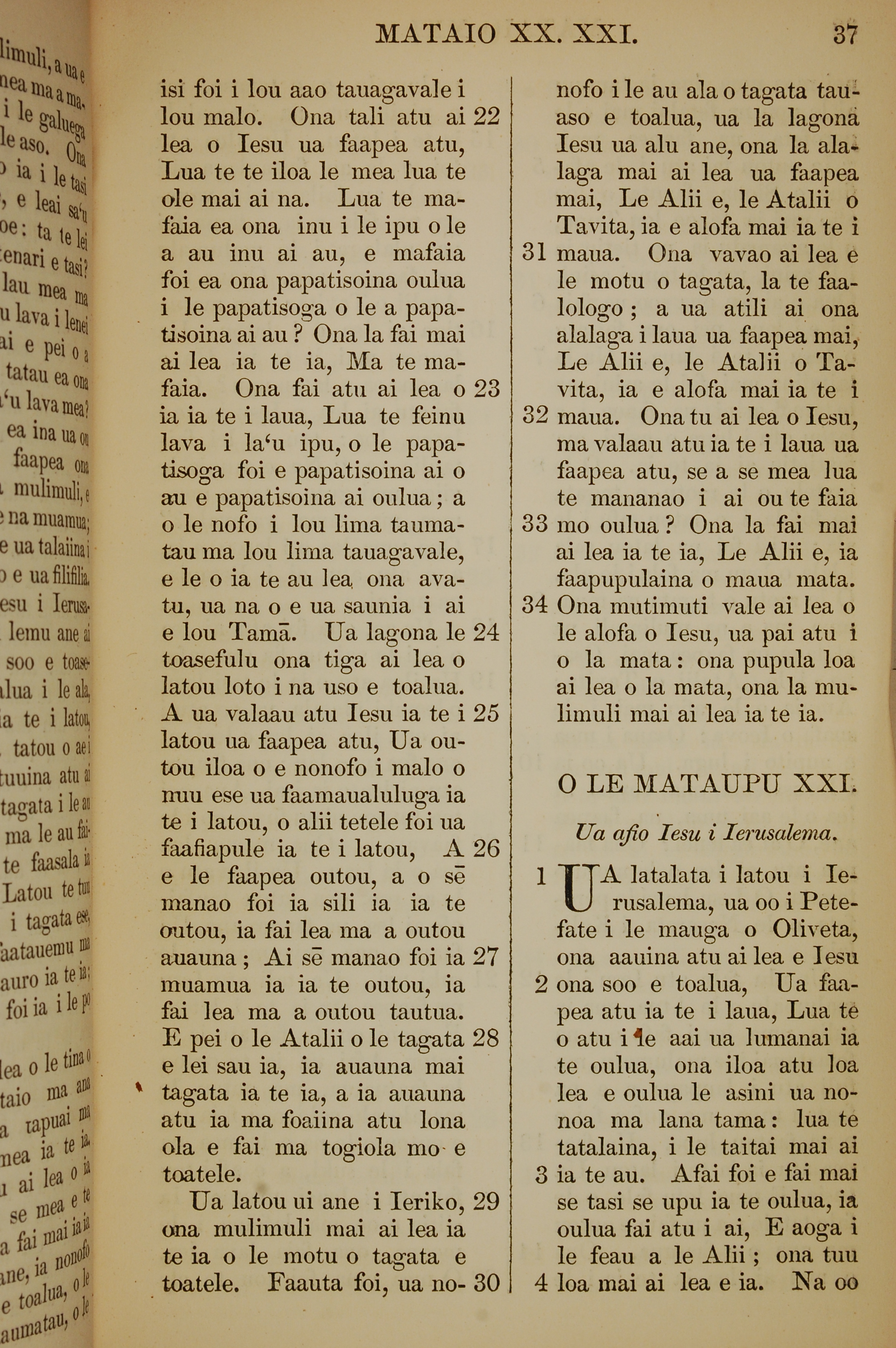 1849年萨摩亚语新约全书 马太福音 20 章 22 节到 21 章 4 节