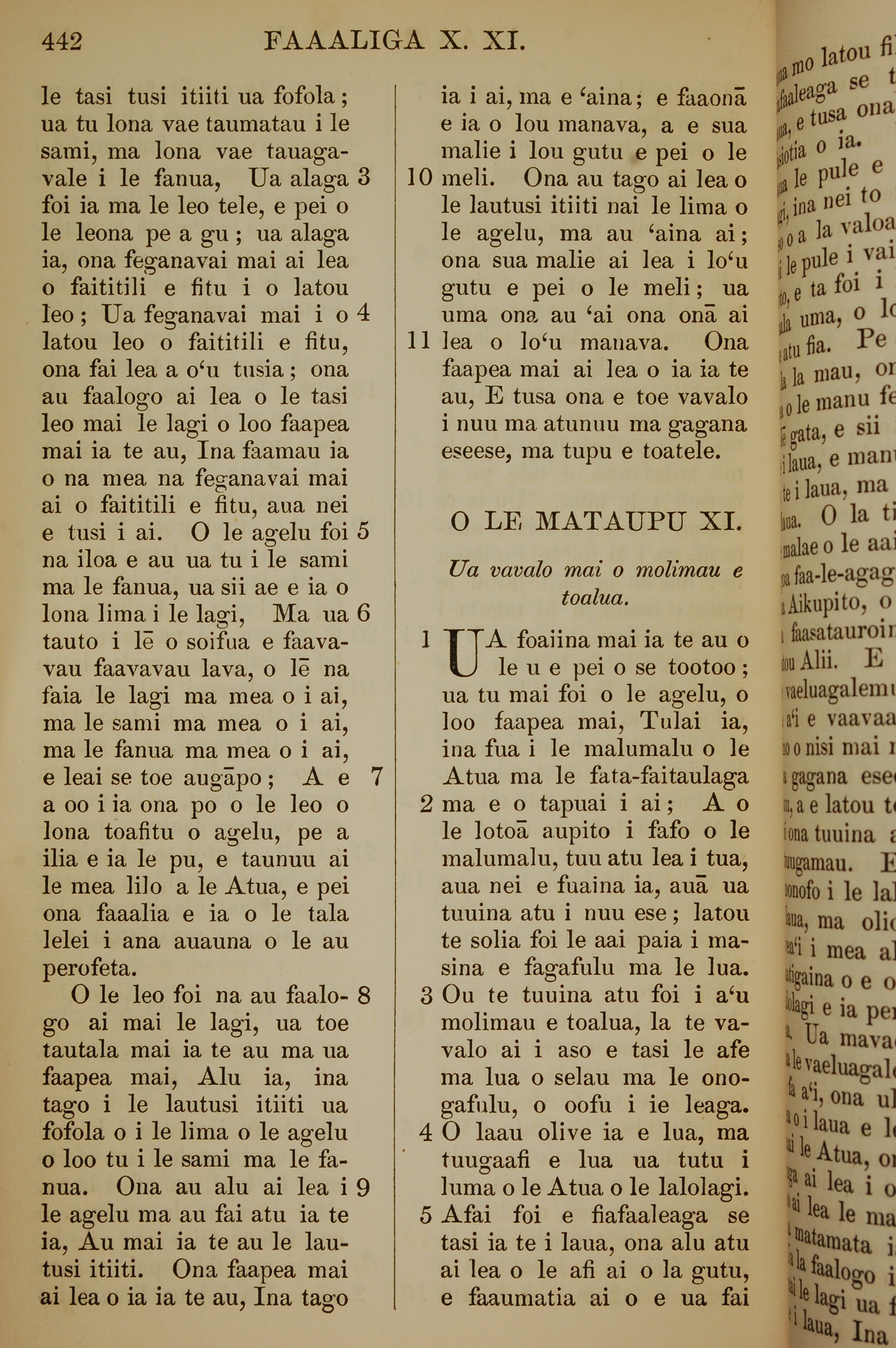 1849年萨摩亚语新约全书 启示录 10 章 3 节到 11 章 5 节