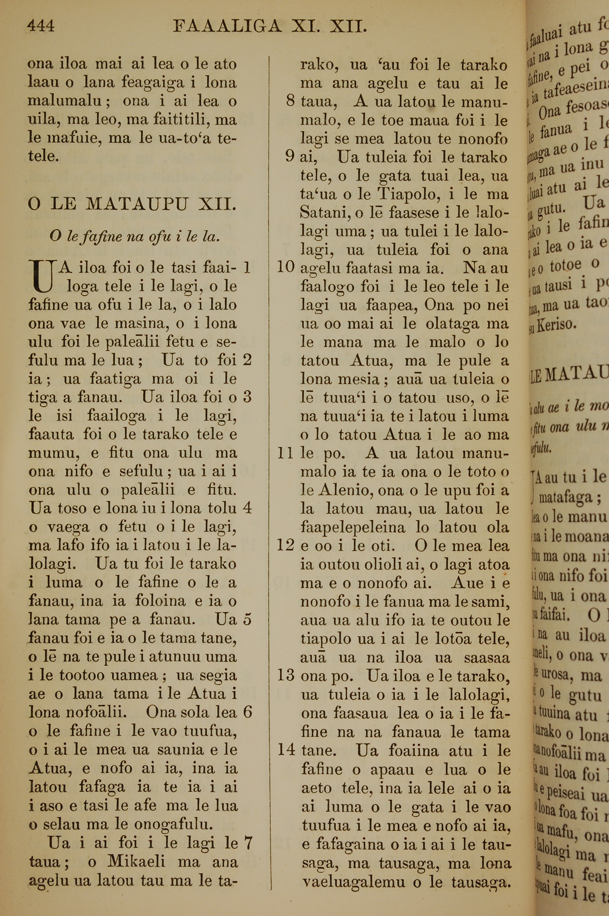 1849年萨摩亚语新约全书 启示录 12 章 1 节到 12 章 14 节