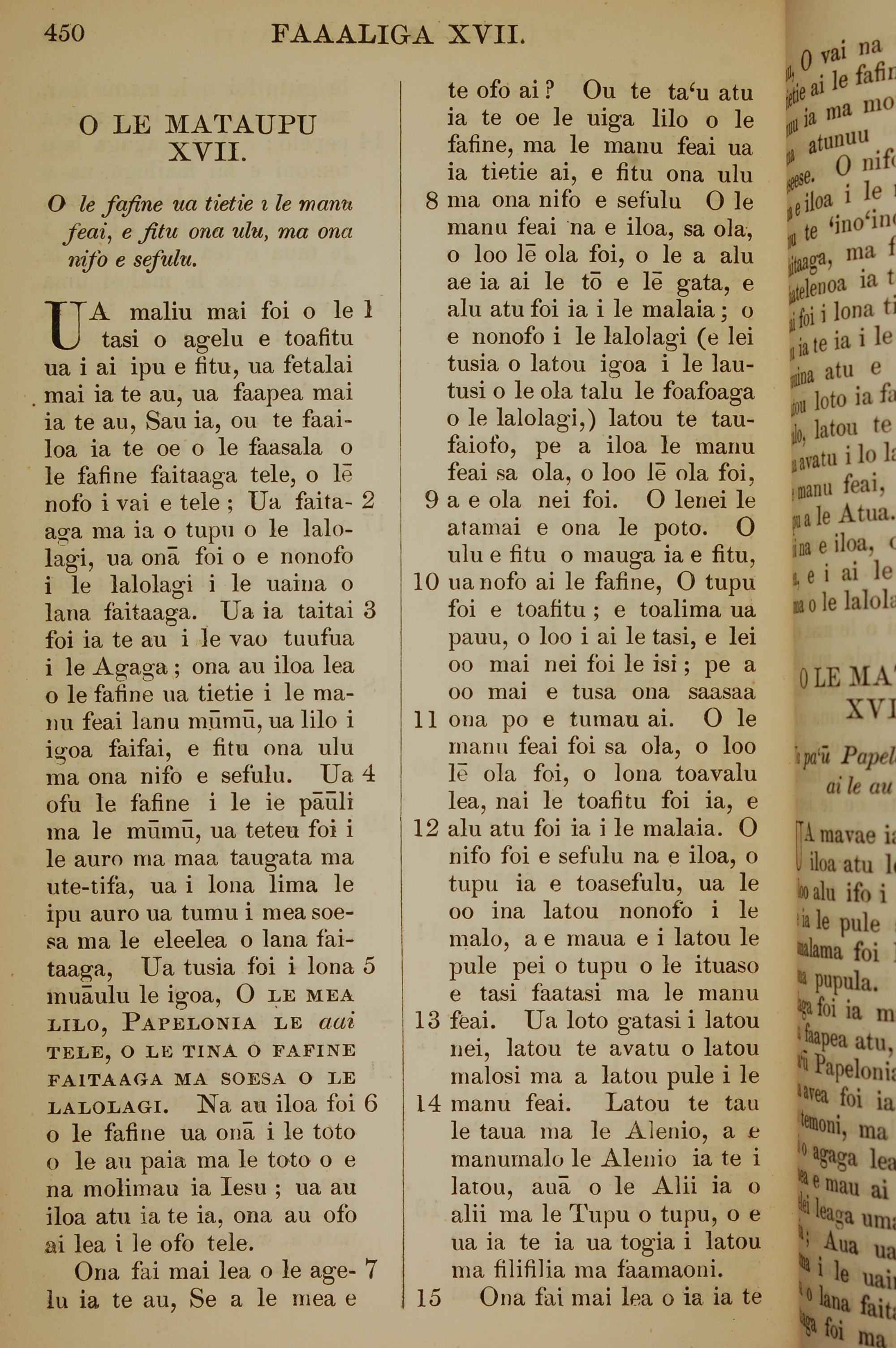 1849年萨摩亚语新约全书 启示录 17 章 1 节到 17 章 15 节