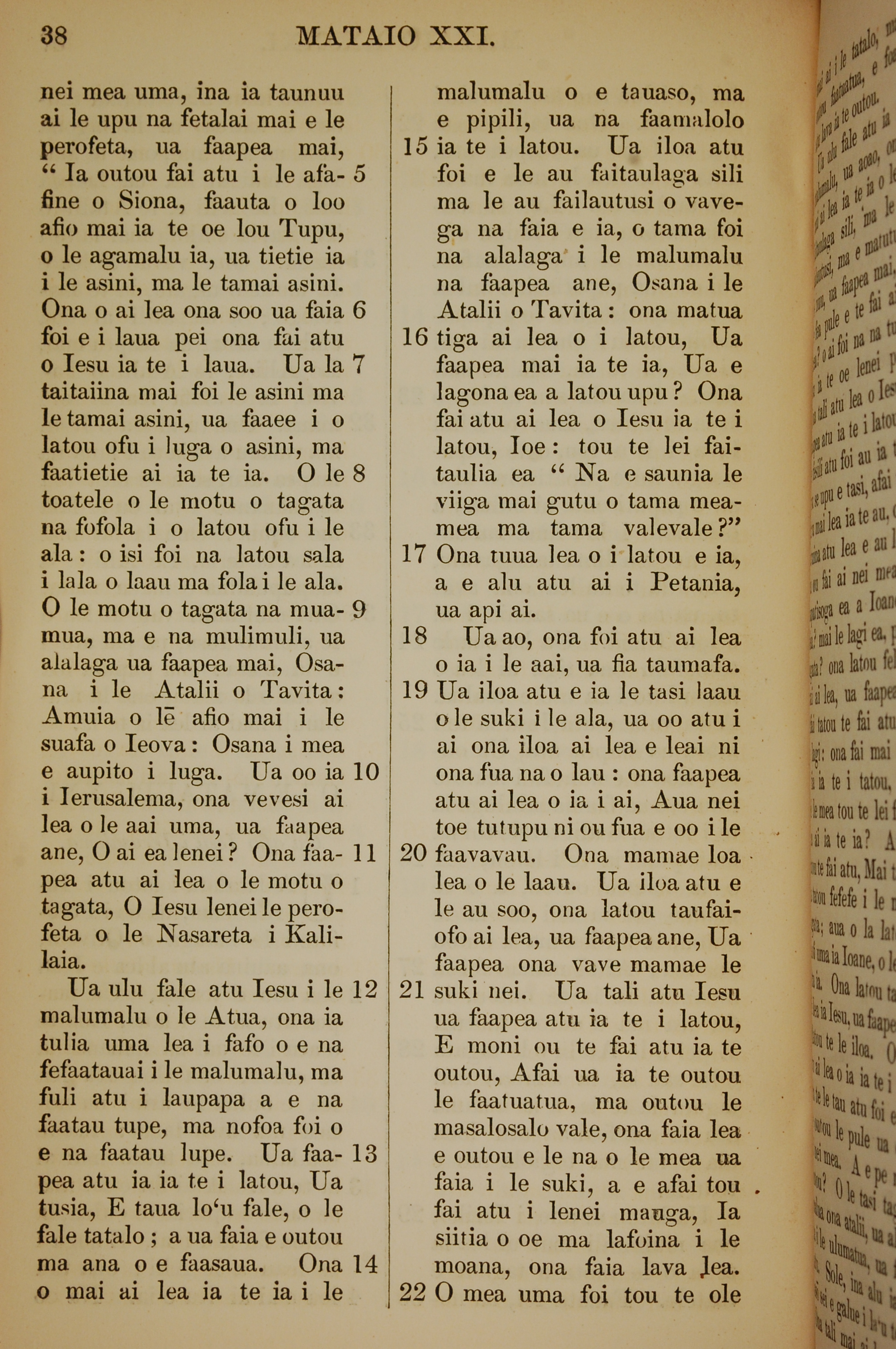 1849年萨摩亚语新约全书 马太福音 21 章 5 节到 21 章 22 节