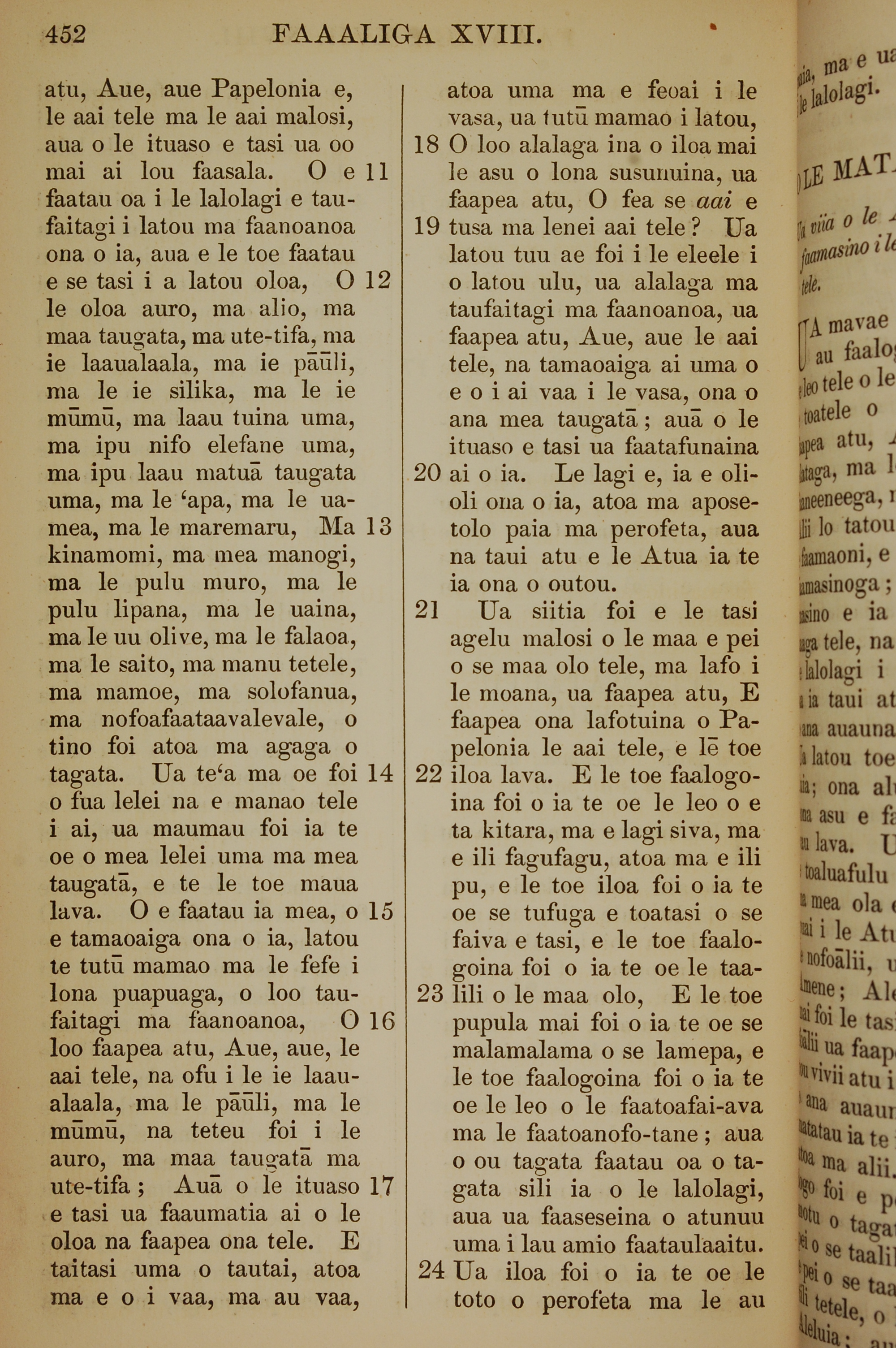 1849年萨摩亚语新约全书 启示录 18 章 11 节到 18 章 24 节