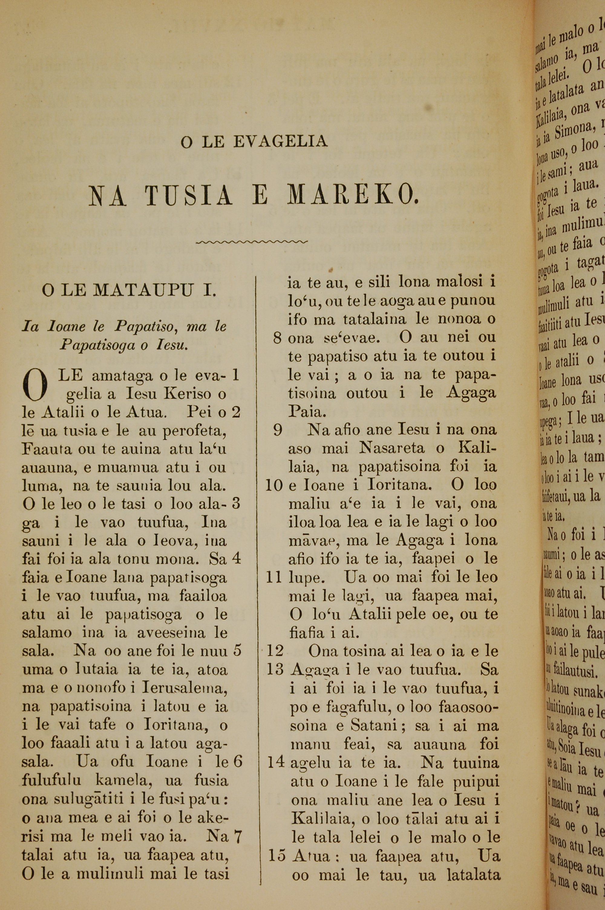 1849年萨摩亚语新约全书 马可福音 1 章 1 节到 1 章 15 节