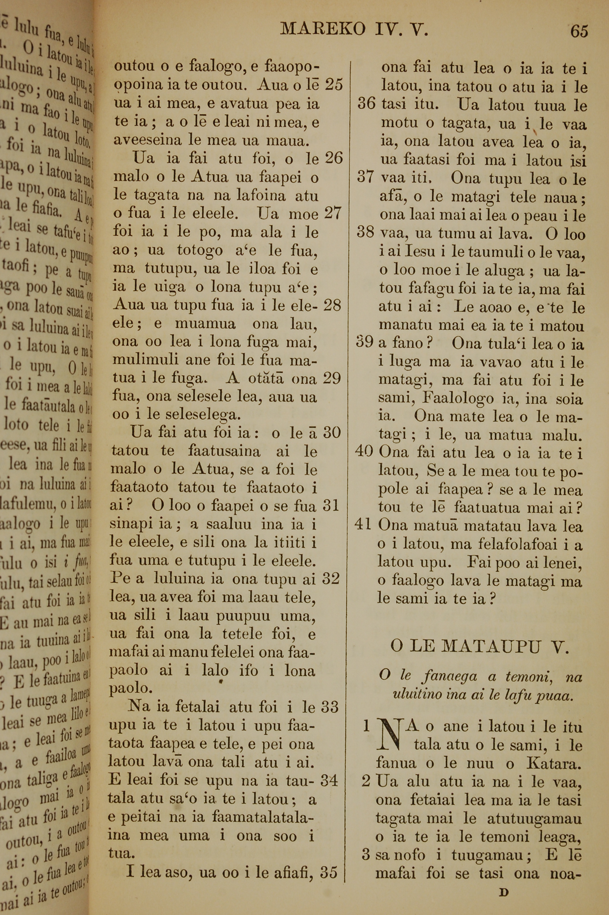 1849年萨摩亚语新约全书 马可福音 4 章 25 节到 5 章 3 节