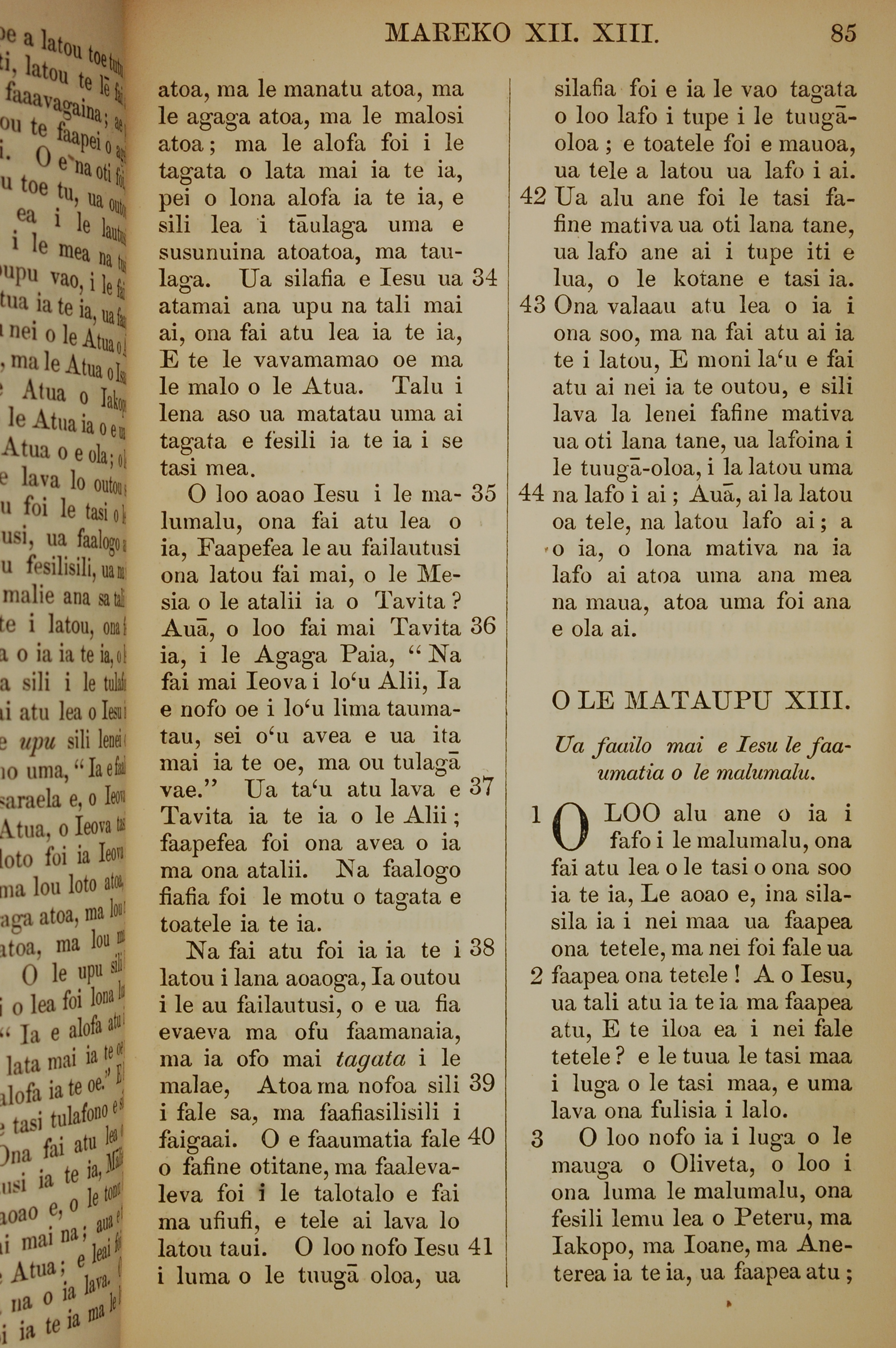 1849年萨摩亚语新约全书 马可福音 12 章 34 节到 13 章 3 节