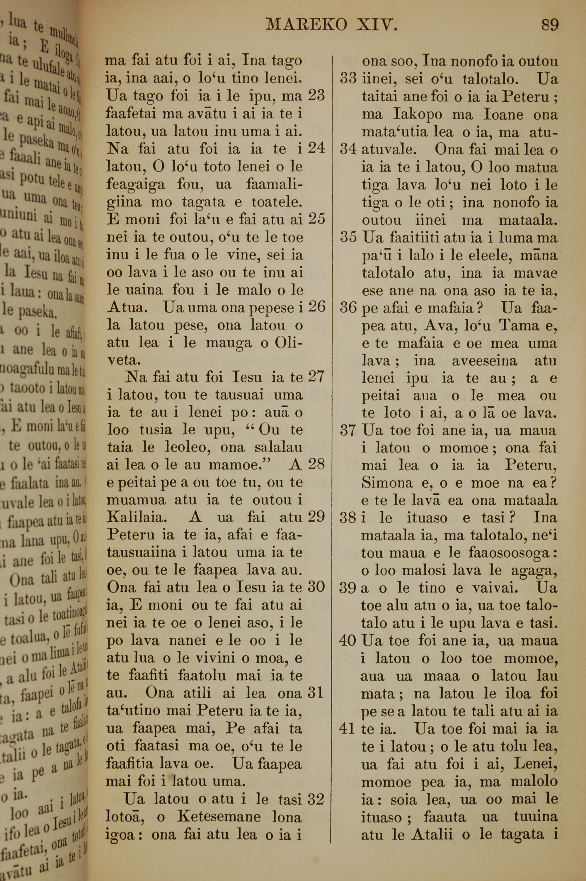 1849年萨摩亚语新约全书 马可福音 14 章 23 节到 14 章 41 节