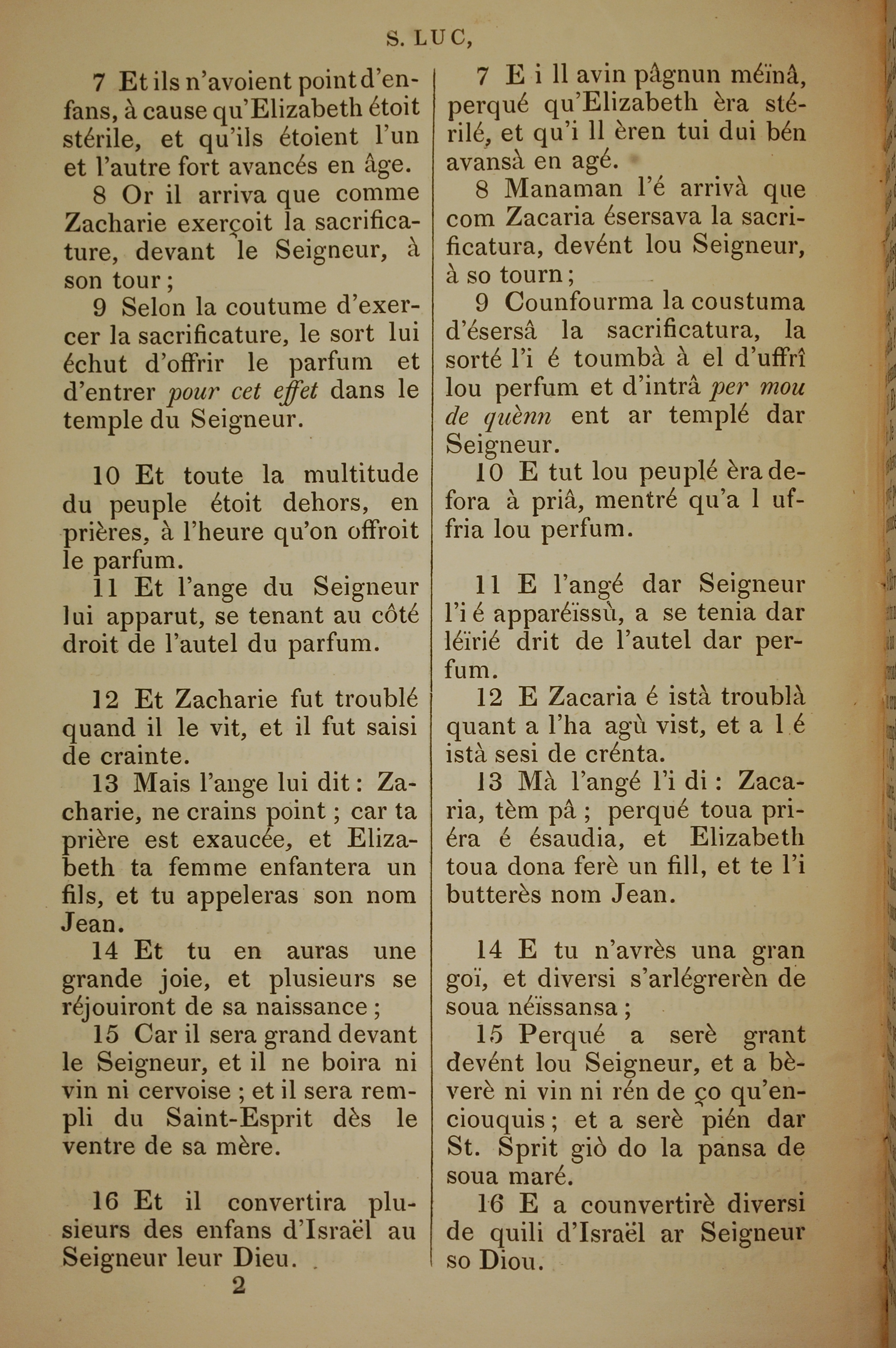 1832年法文圣经路加福音及约翰福音 路加福音 1 章 7 节到 1 章 16 节
