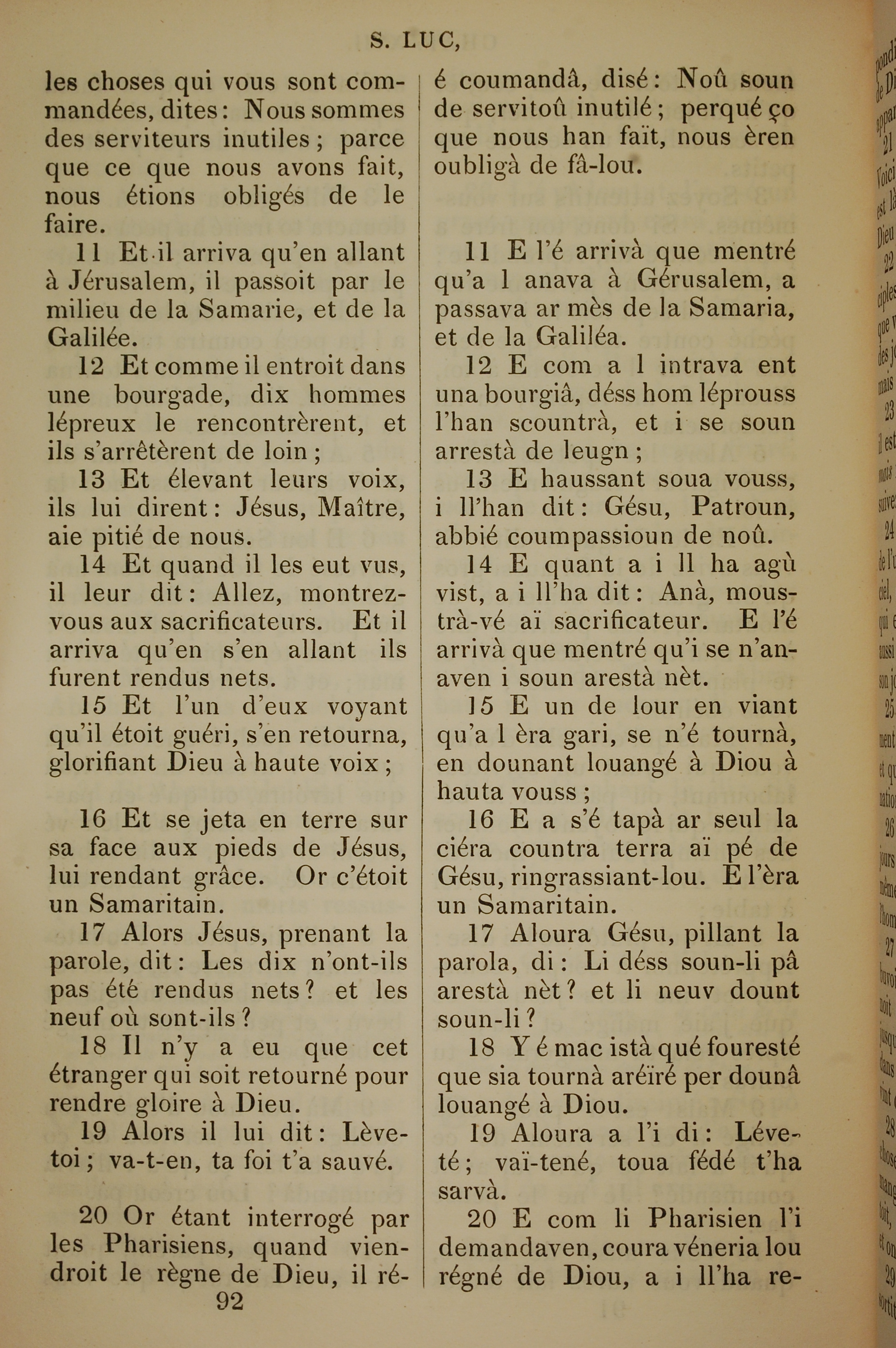 1832年法文圣经路加福音及约翰福音 路加福音 17 章 11 节到 17 章 20 节