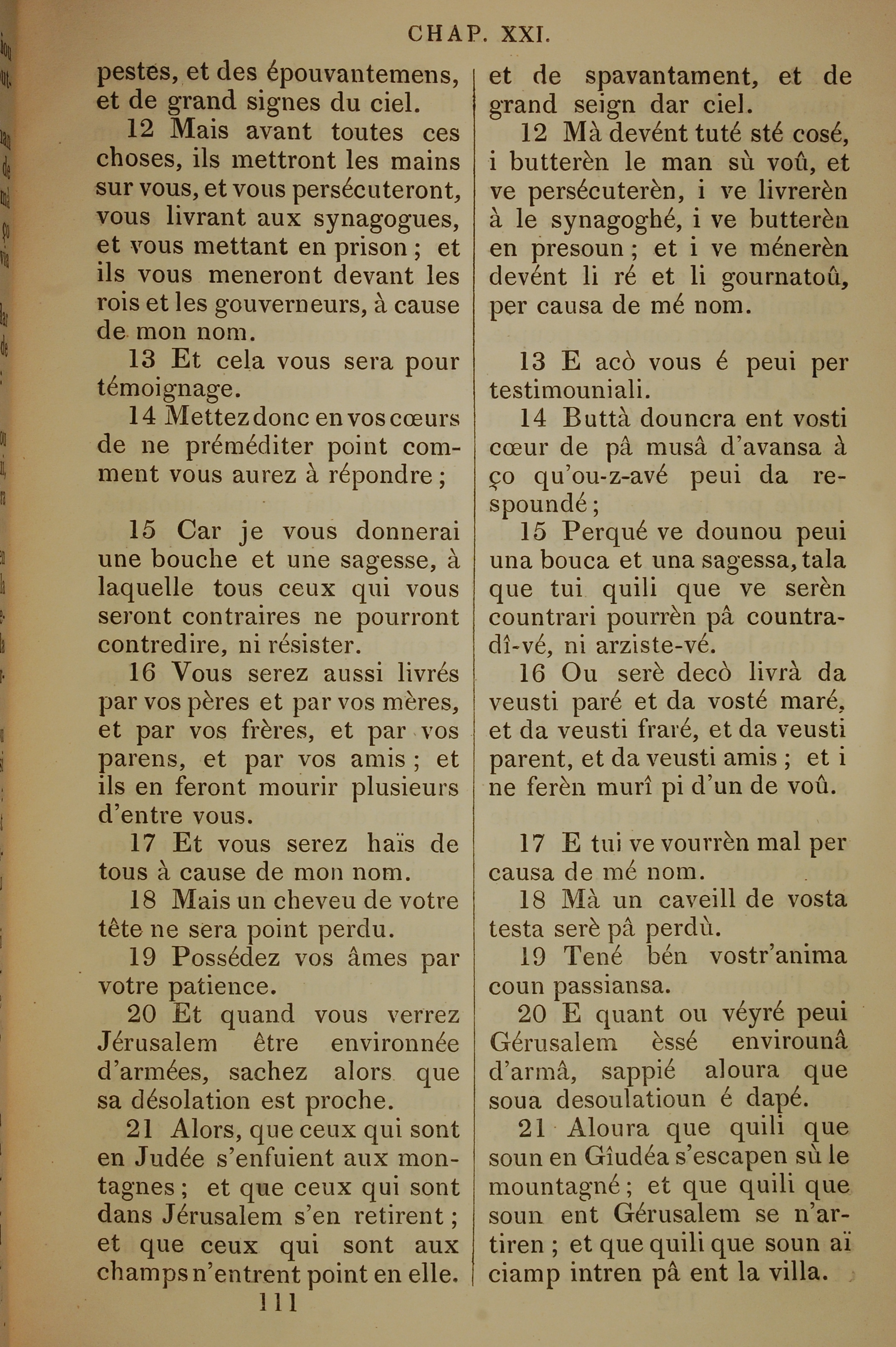 1832年法文圣经路加福音及约翰福音 路加福音 21 章 12 节到 21 章 21 节
