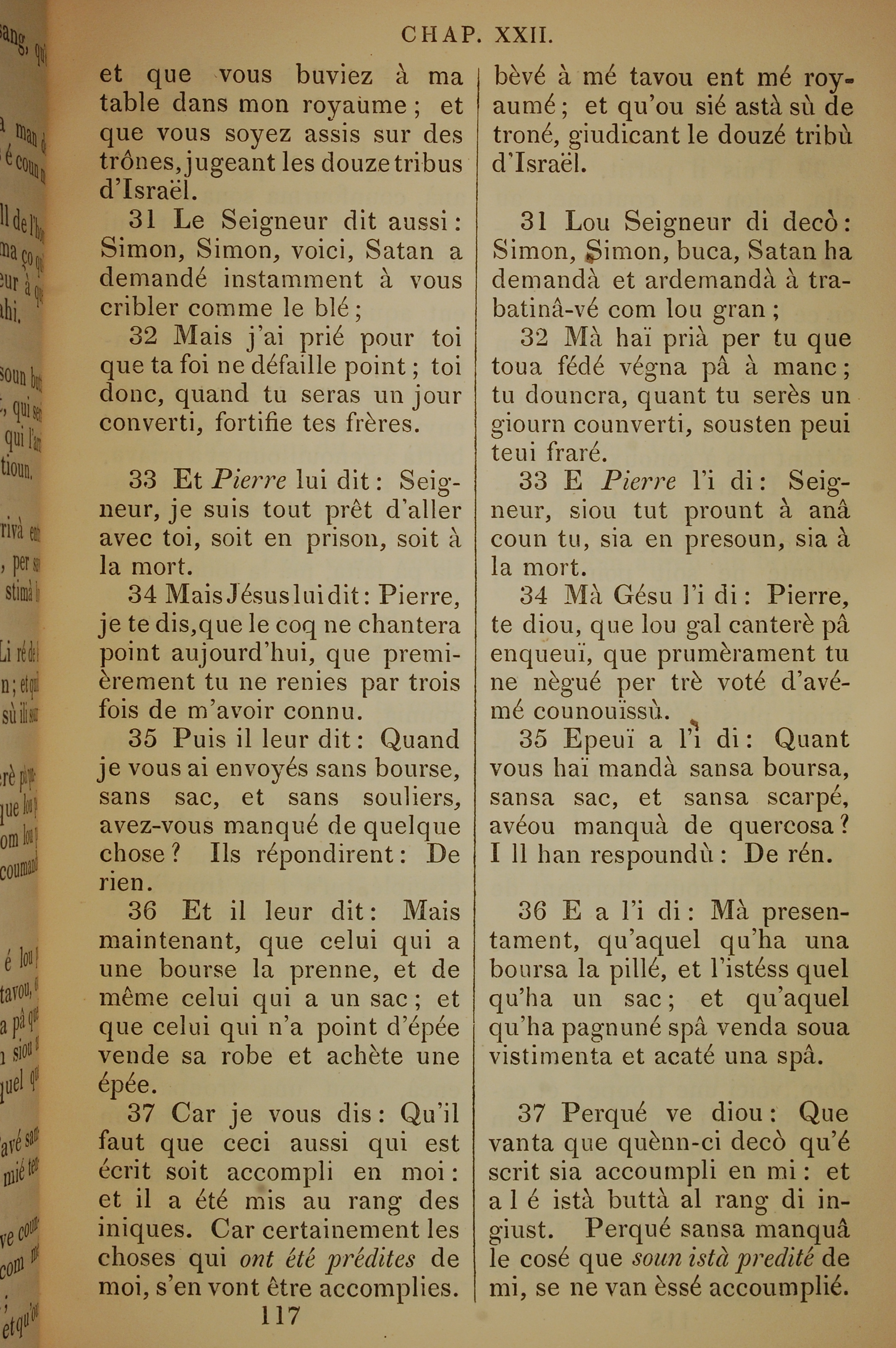 1832年法文圣经路加福音及约翰福音 路加福音 22 章 31 节到 22 章 37 节