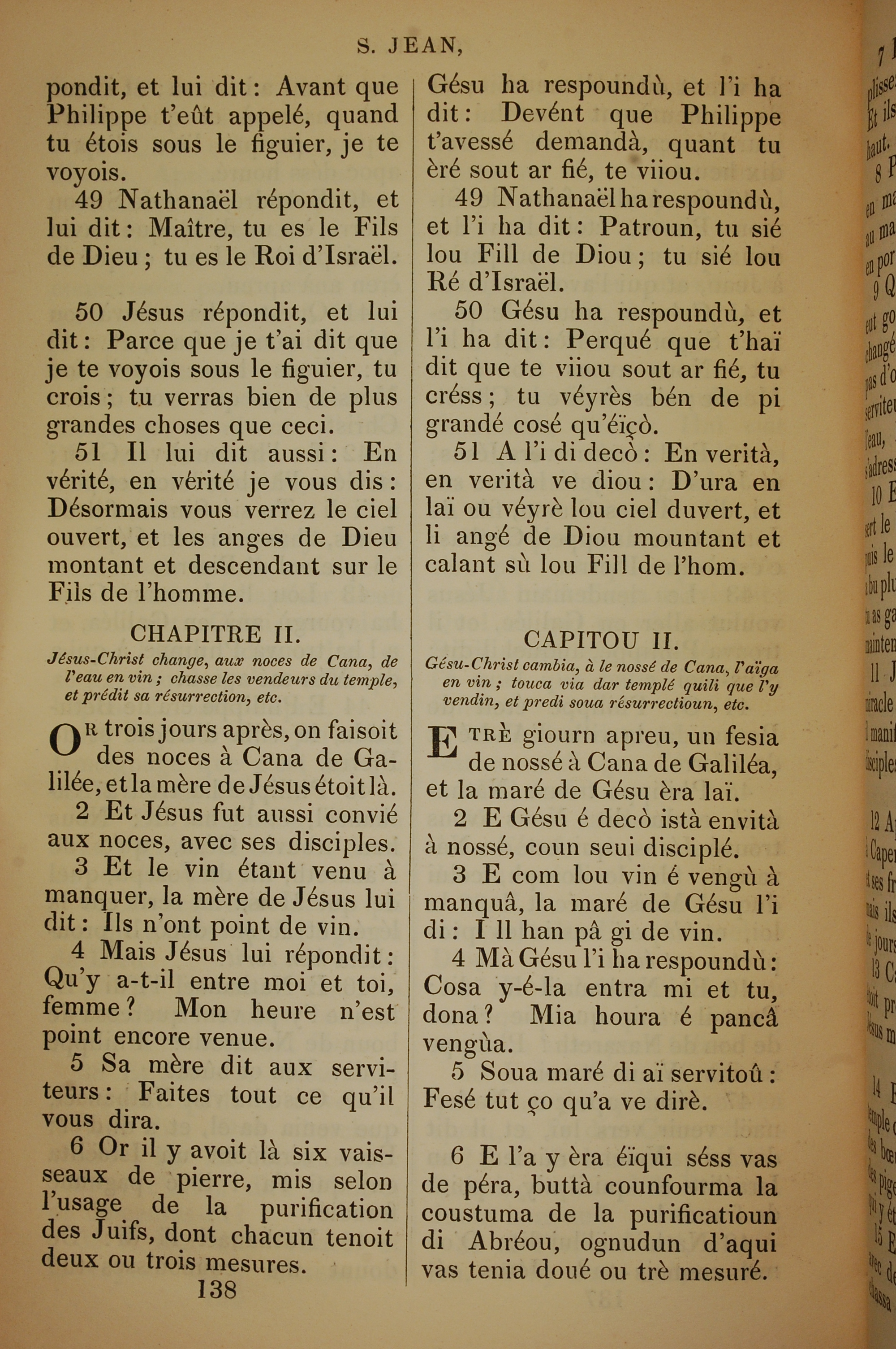 1832年法文圣经路加福音及约翰福音 约翰福音 1 章 49 节到 2 章 6 节