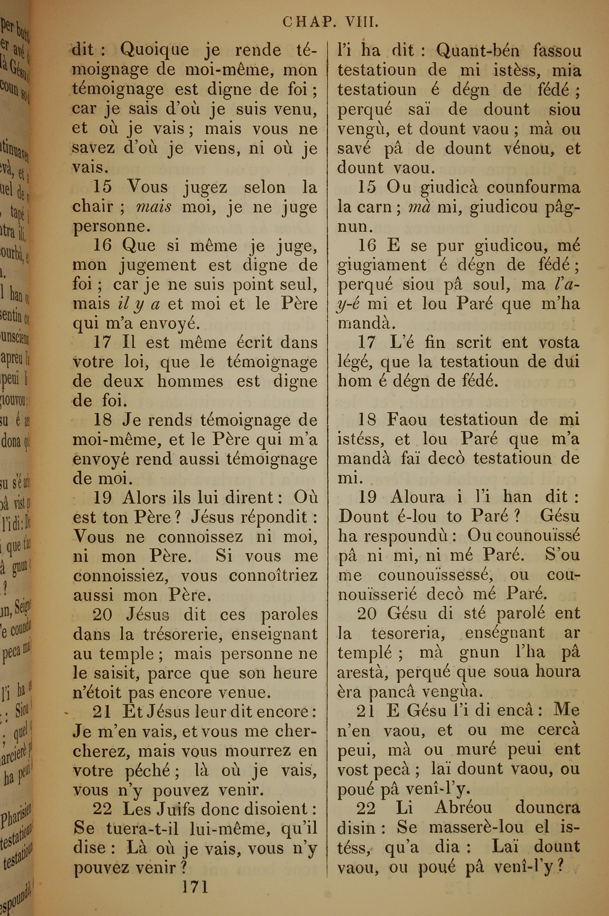 1832年法文圣经路加福音及约翰福音 约翰福音 8 章 15 节到 8 章 22 节