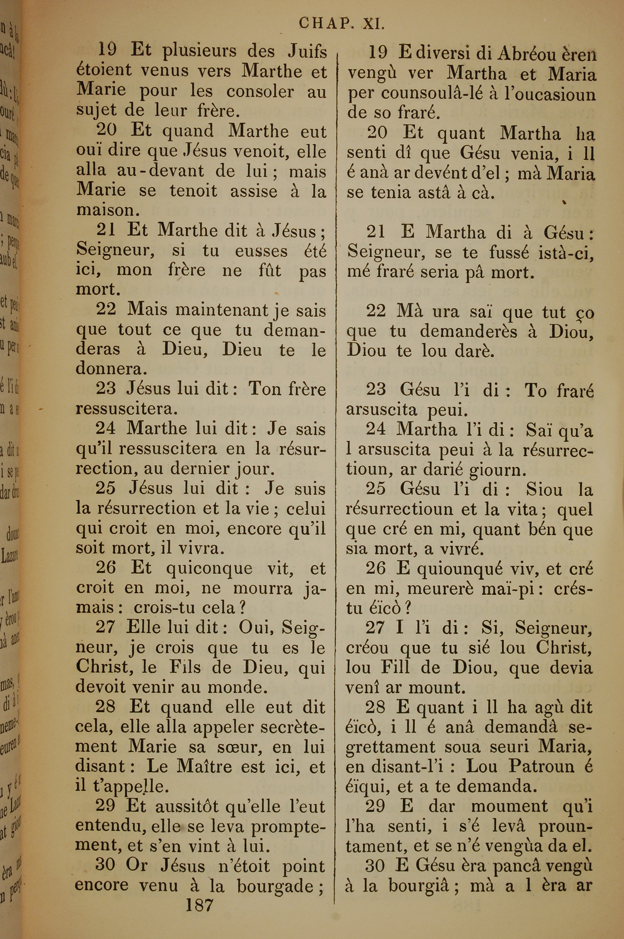 1832年法文圣经路加福音及约翰福音 约翰福音 11 章 19 节到 11 章 30 节