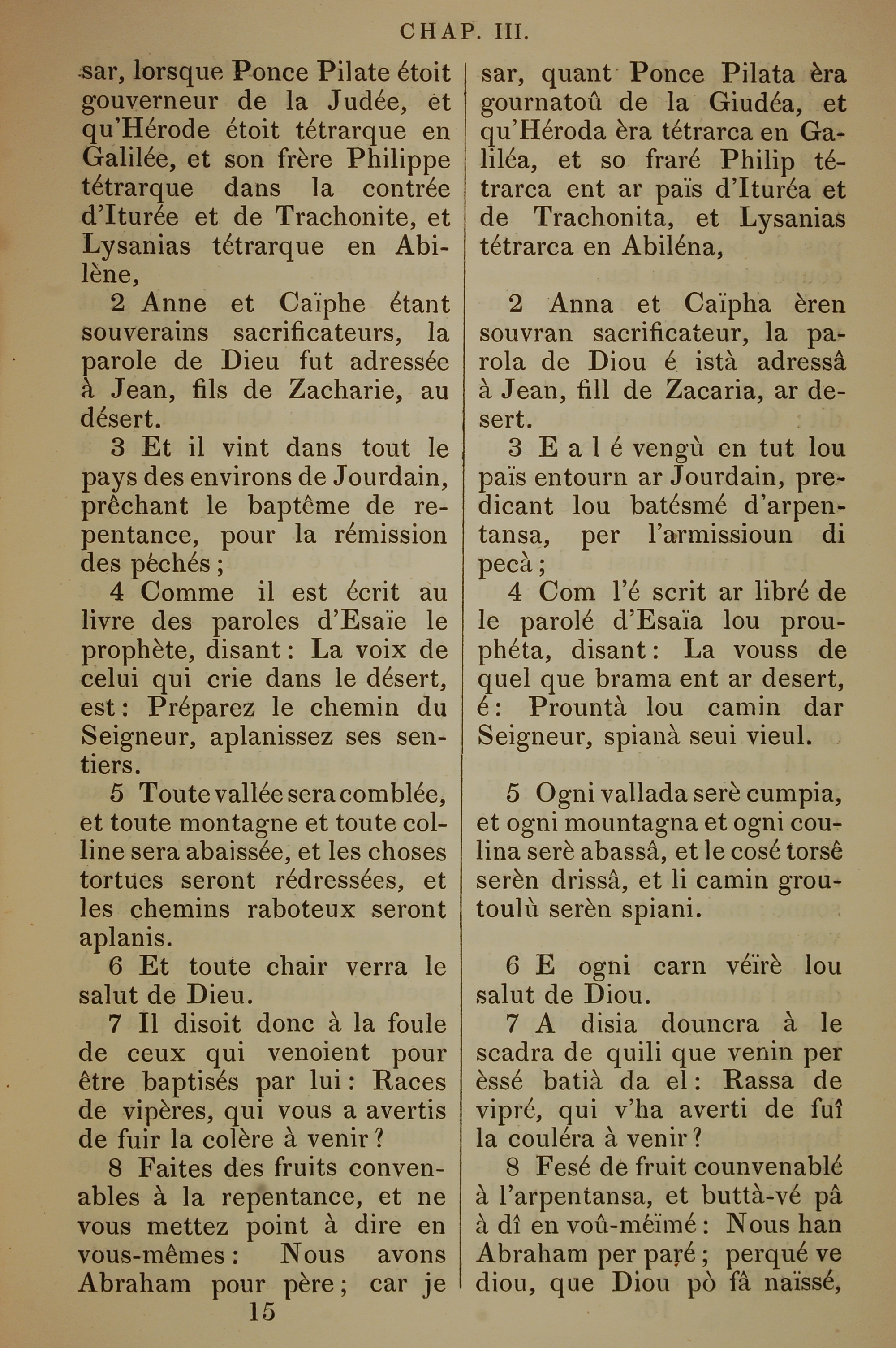 1832年法文圣经路加福音及约翰福音 路加福音 3 章 2 节到 3 章 8 节
