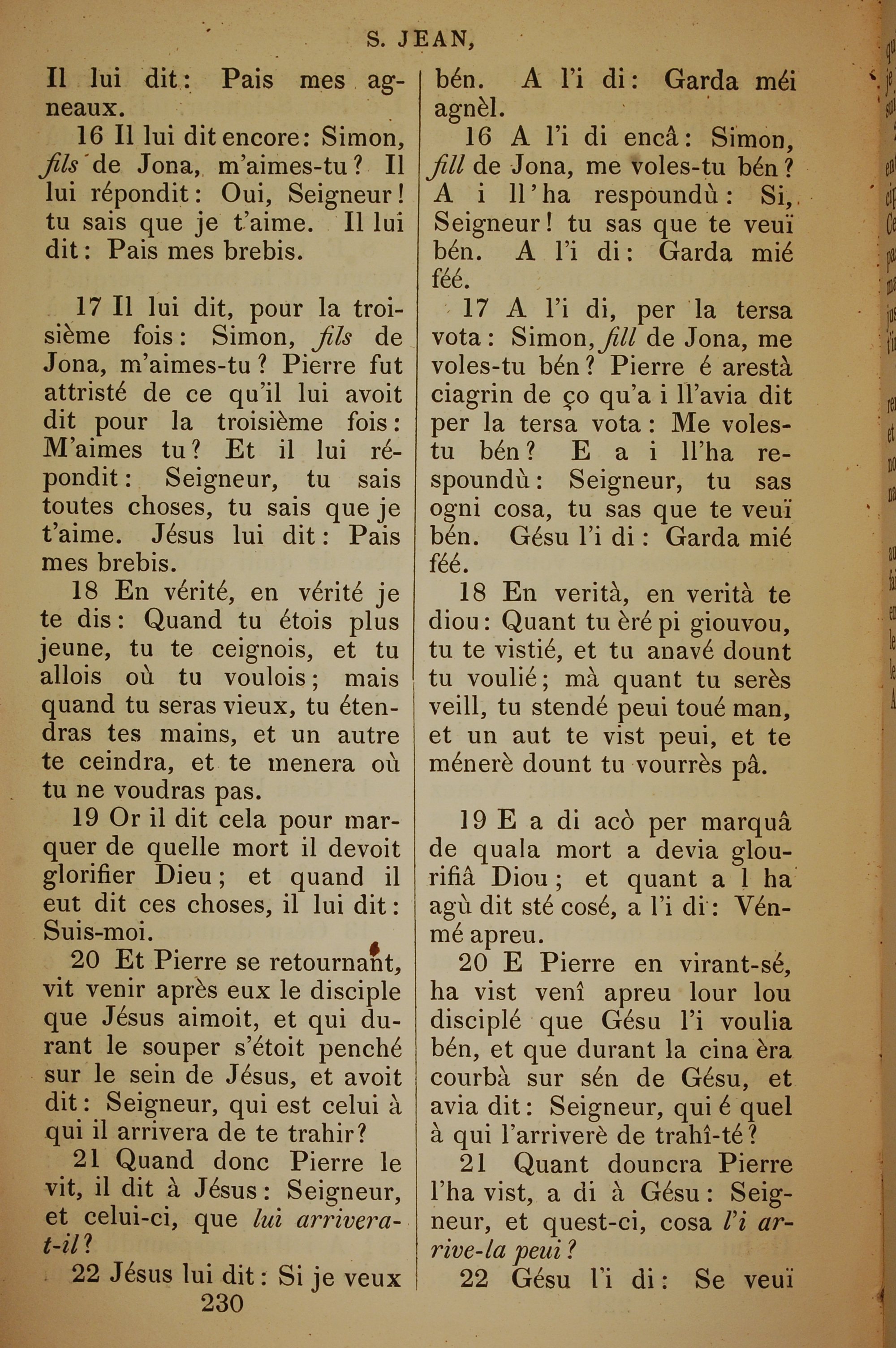 1832年法文圣经路加福音及约翰福音 约翰福音 21 章 16 节到 21 章 22 节