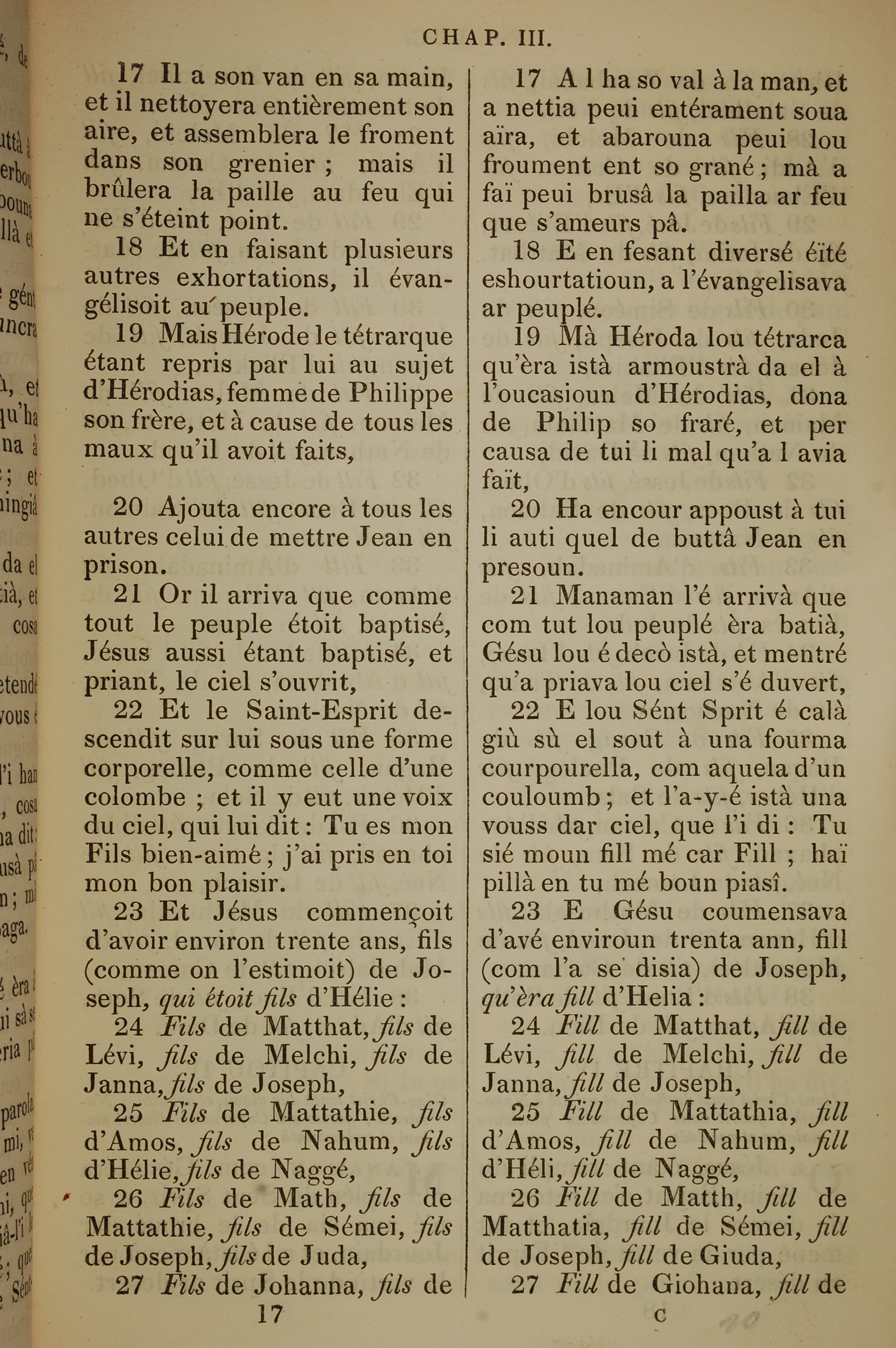 1832年法文圣经路加福音及约翰福音 路加福音 3 章 17 节到 3 章 27 节