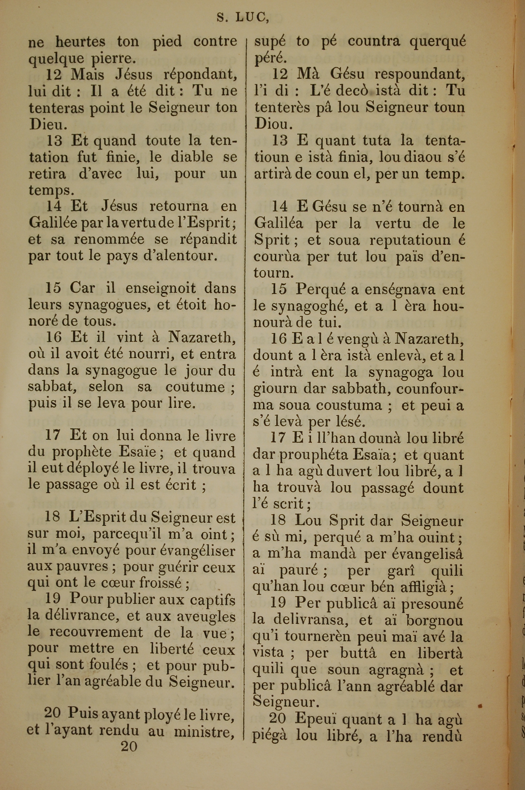 1832年法文圣经路加福音及约翰福音 路加福音 4 章 12 节到 4 章 20 节