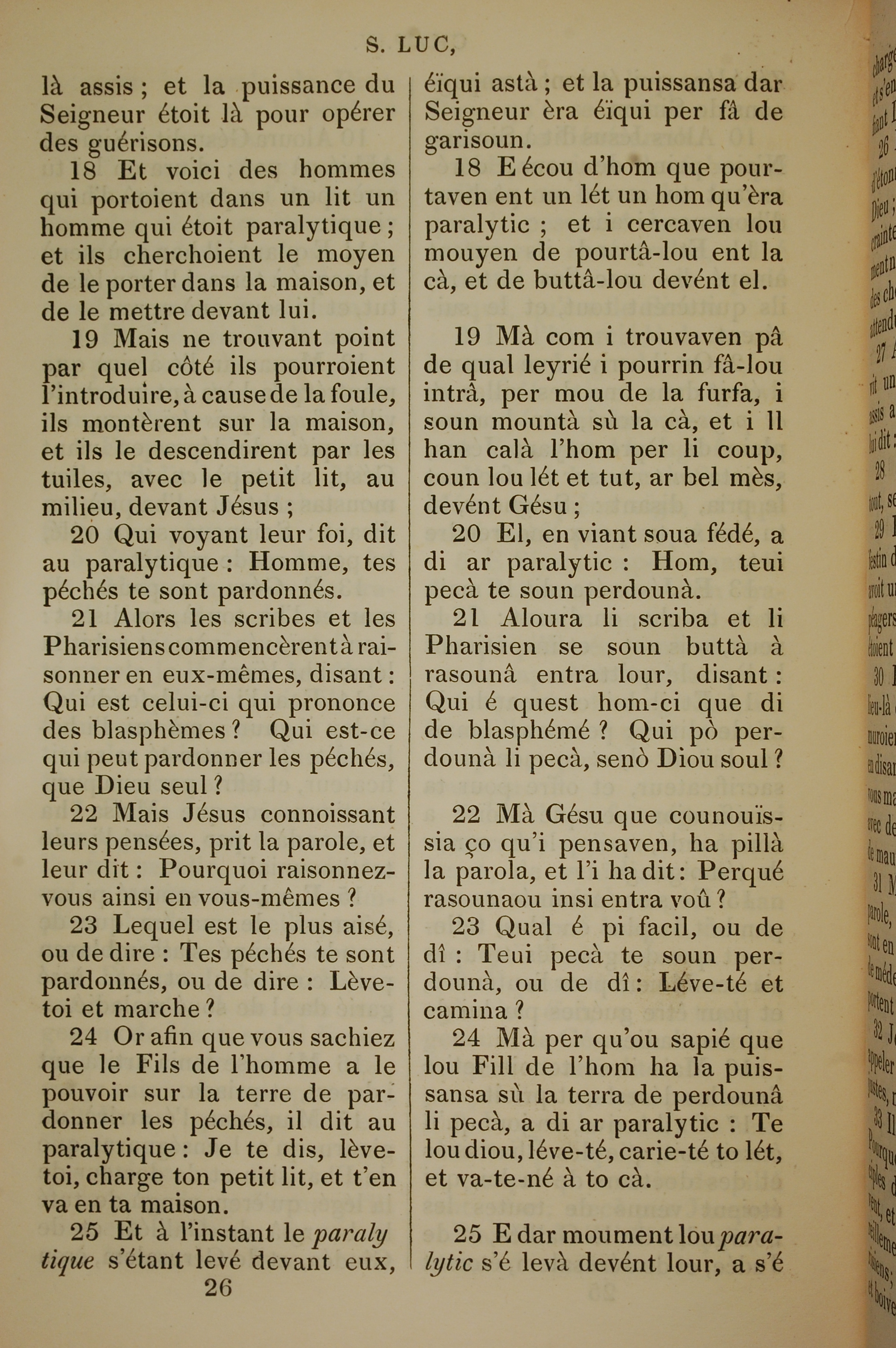 1832年法文圣经路加福音及约翰福音 路加福音 5 章 18 节到 5 章 25 节