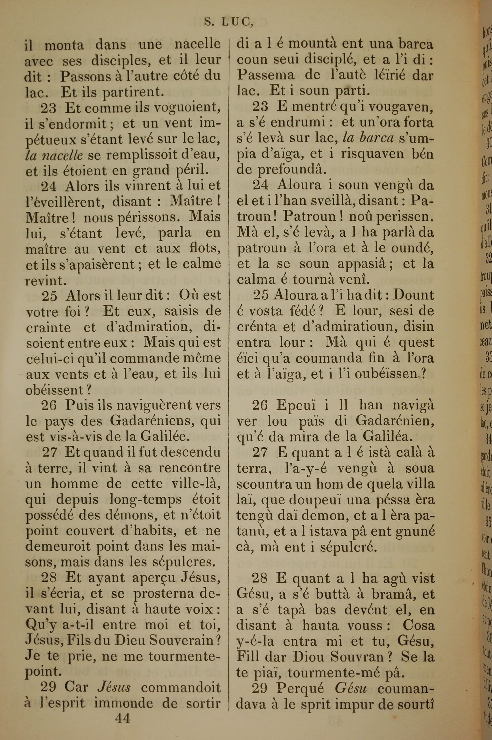 1832年法文圣经路加福音及约翰福音 路加福音 8 章 23 节到 8 章 29 节