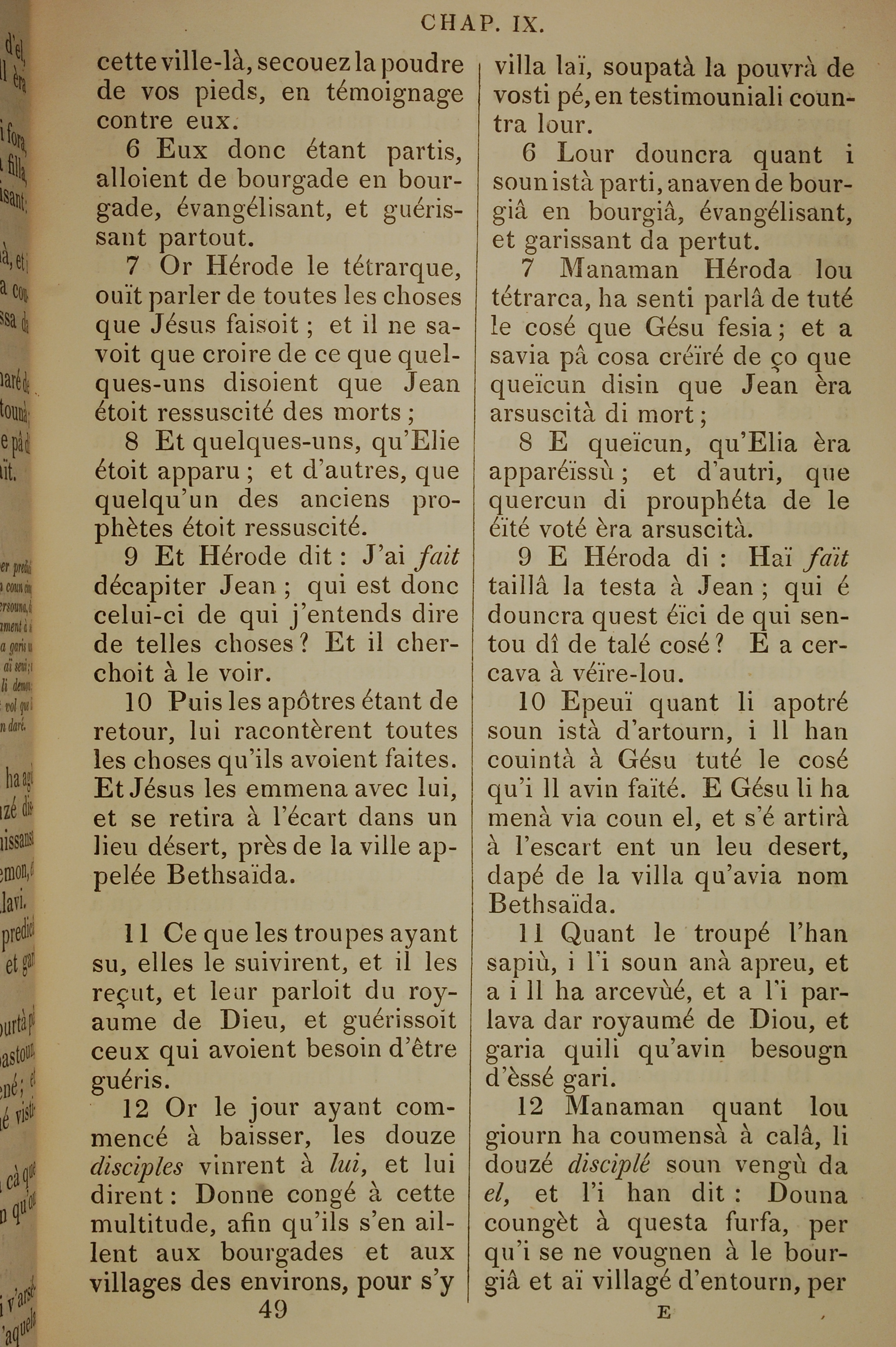 1832年法文圣经路加福音及约翰福音 路加福音 9 章 6 节到 9 章 12 节
