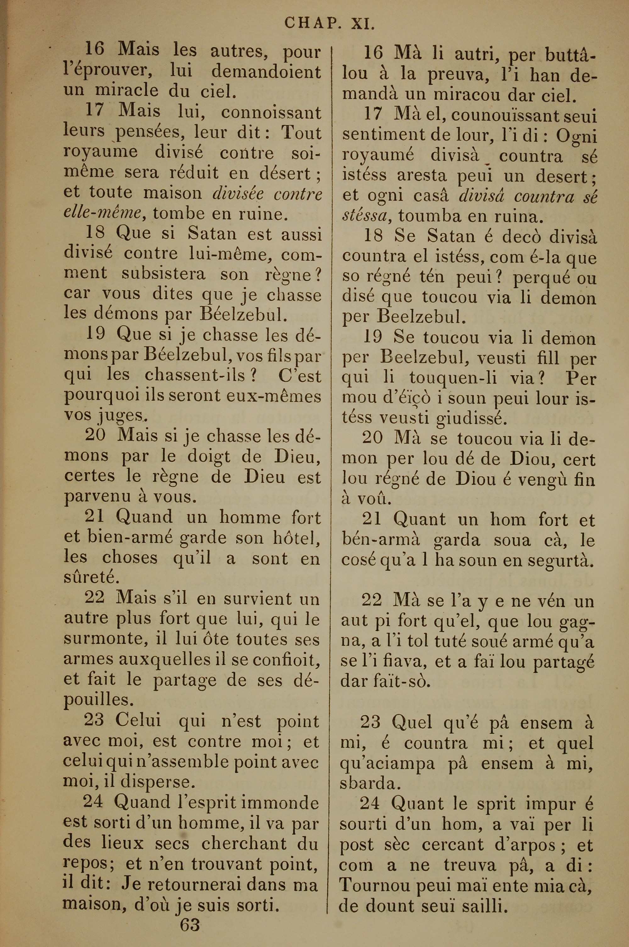 1832年法文圣经路加福音及约翰福音 路加福音 11 章 16 节到 11 章 24 节