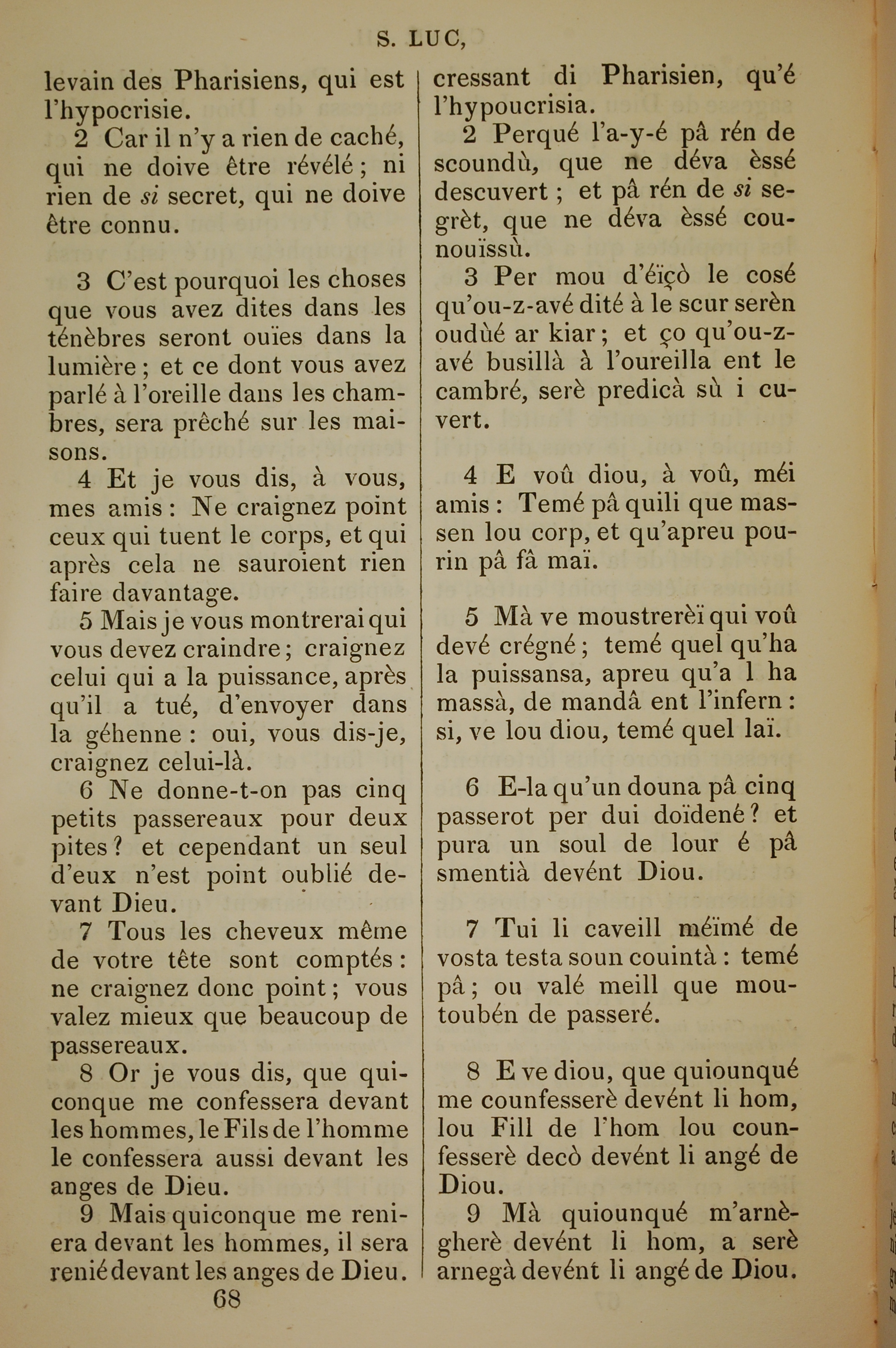 1832年法文圣经路加福音及约翰福音 路加福音 12 章 2 节到 12 章 9 节