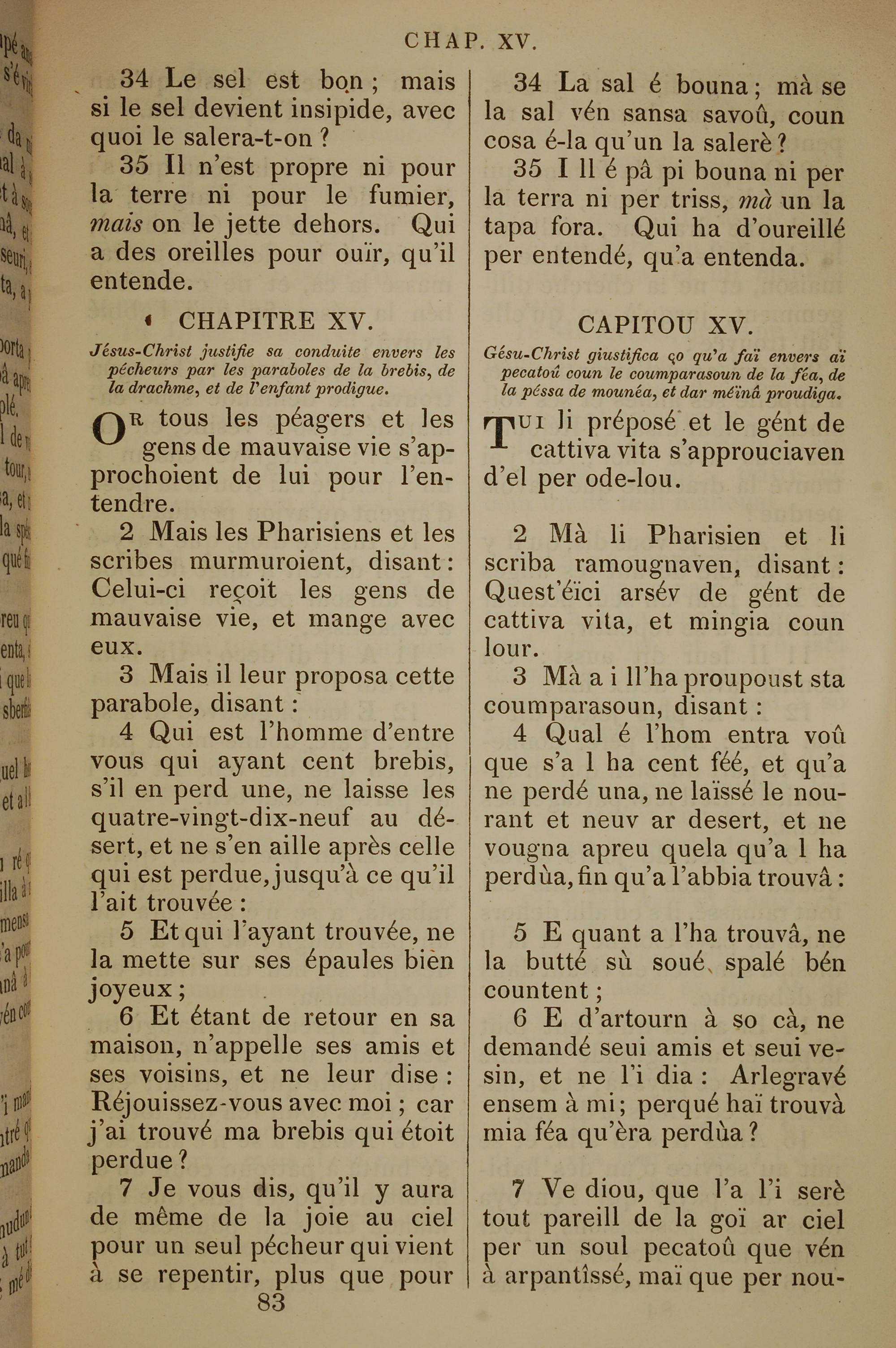 1832年法文圣经路加福音及约翰福音 路加福音 14 章 34 节到 15 章 7 节