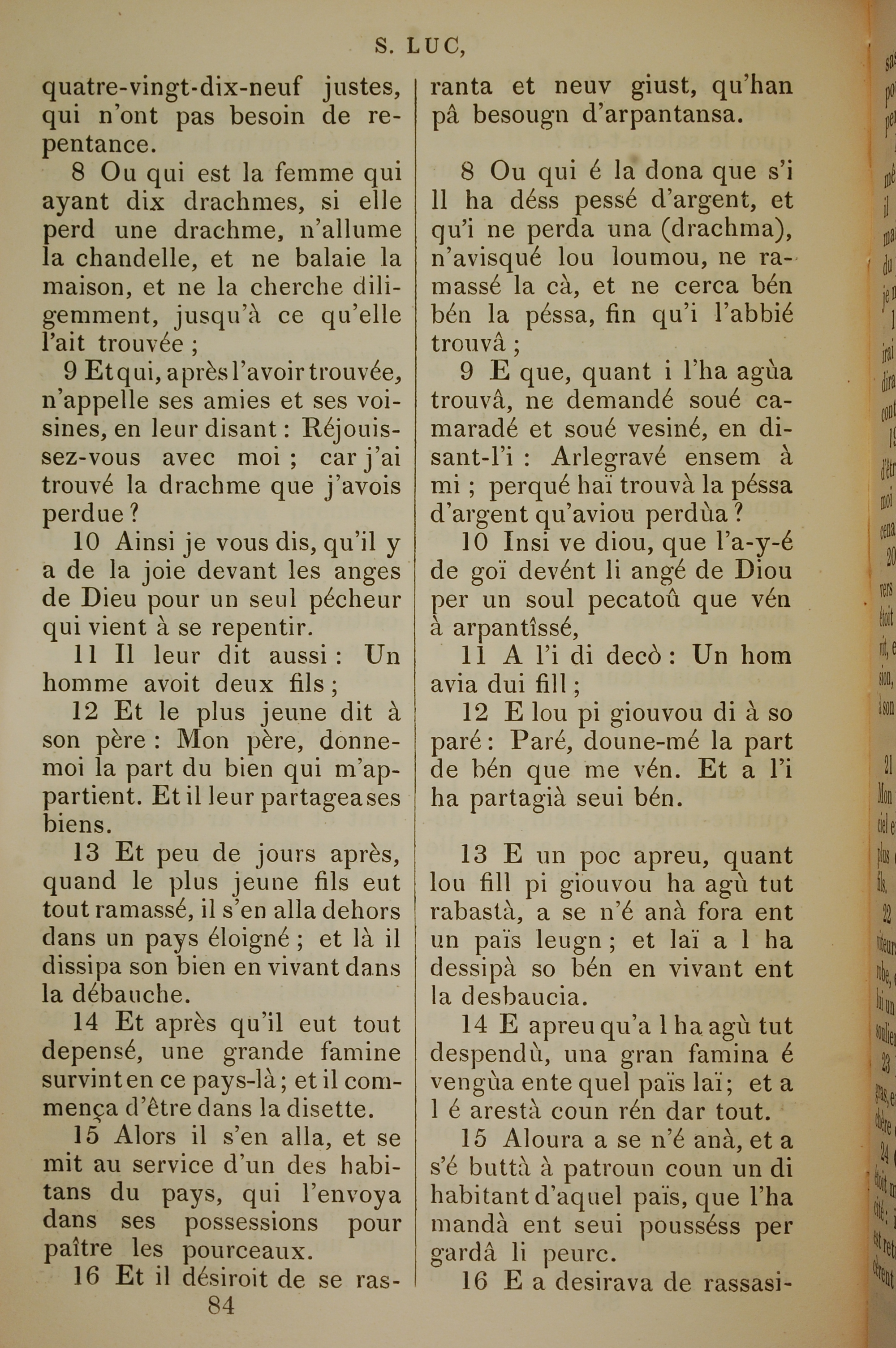 1832年法文圣经路加福音及约翰福音 路加福音 15 章 8 节到 15 章 16 节