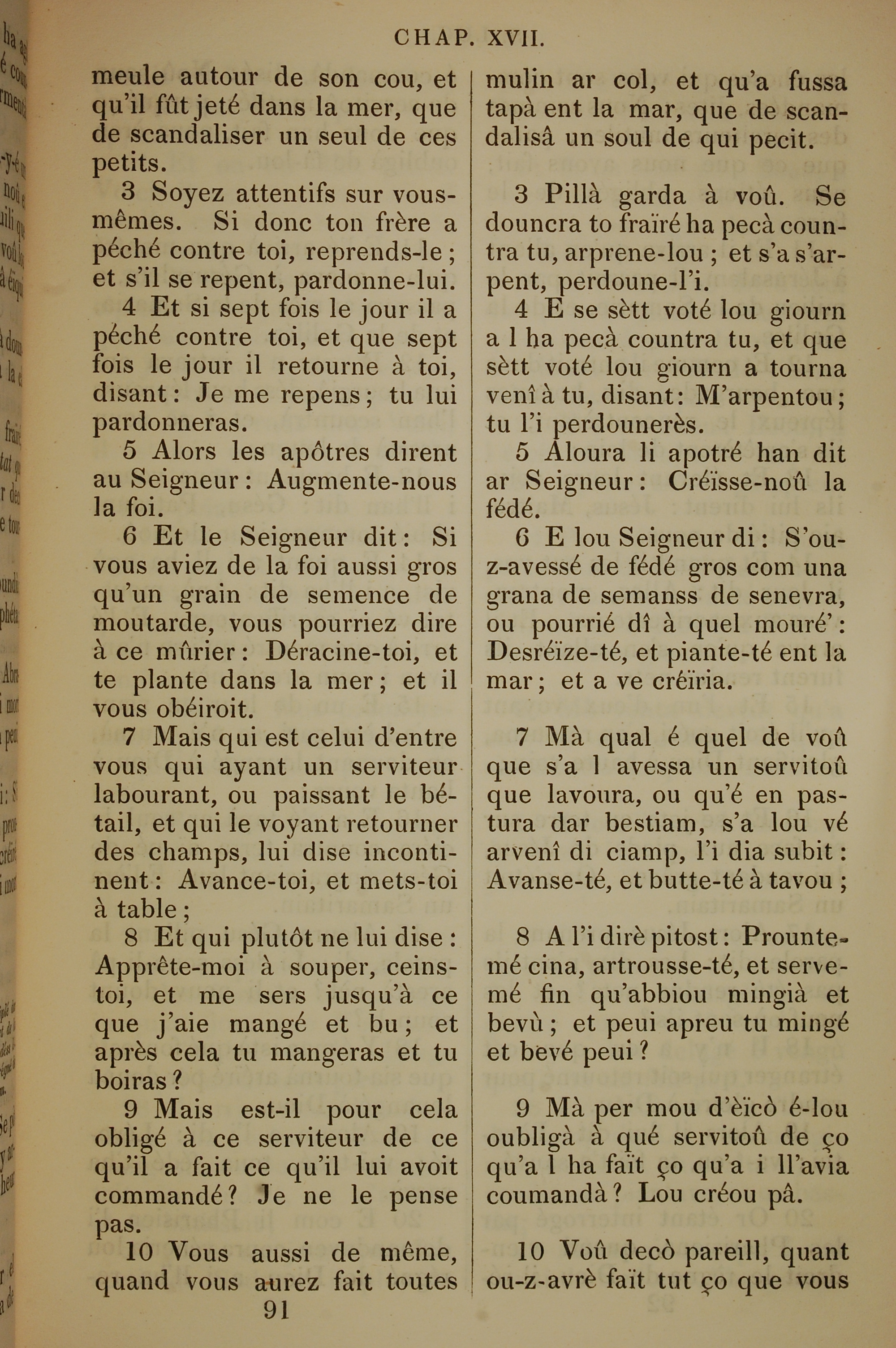 1832年法文圣经路加福音及约翰福音 路加福音 17 章 3 节到 17 章 10 节