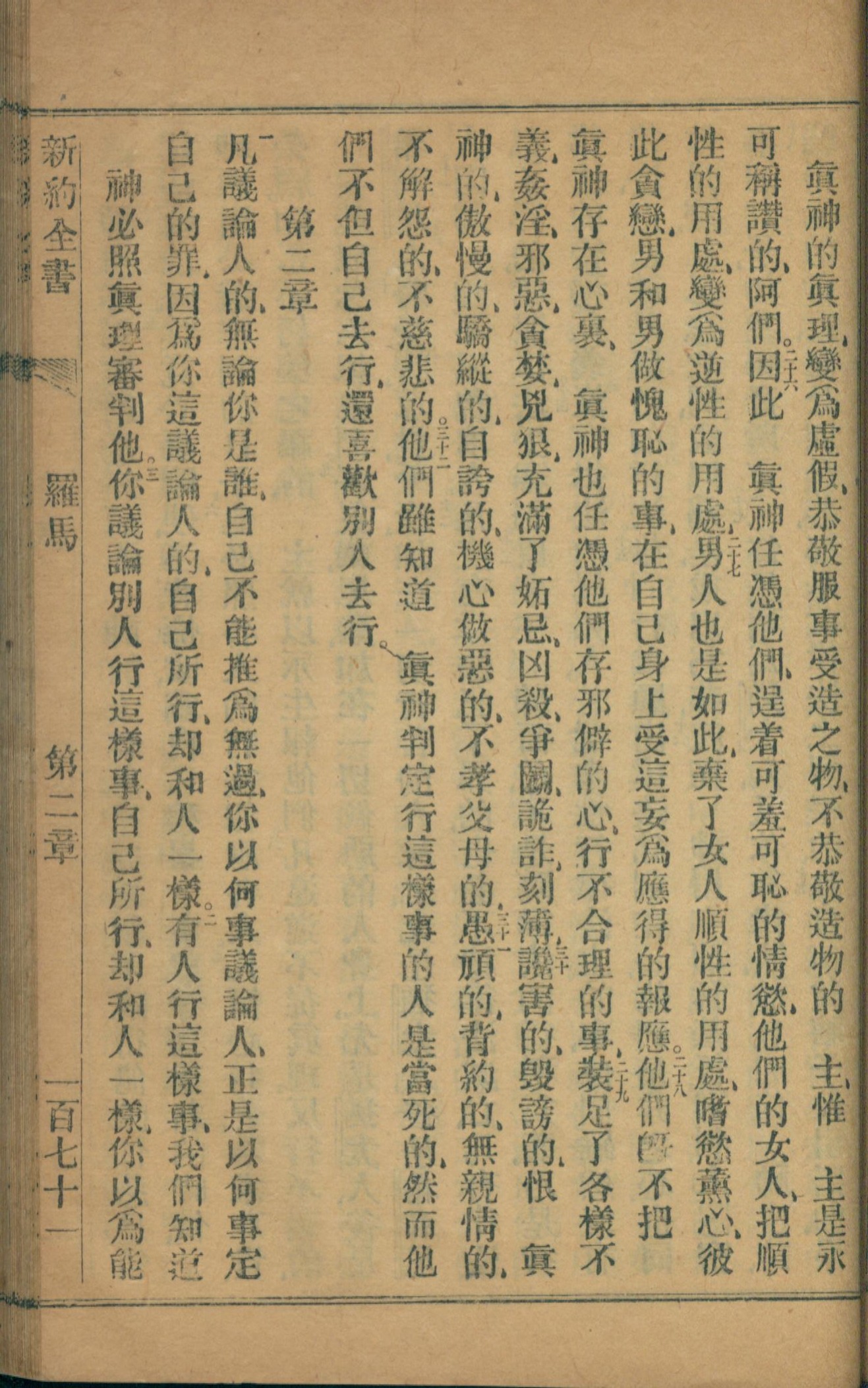 1872年官话新约全书 罗马书 1 章 26 节到 2 章 3 节