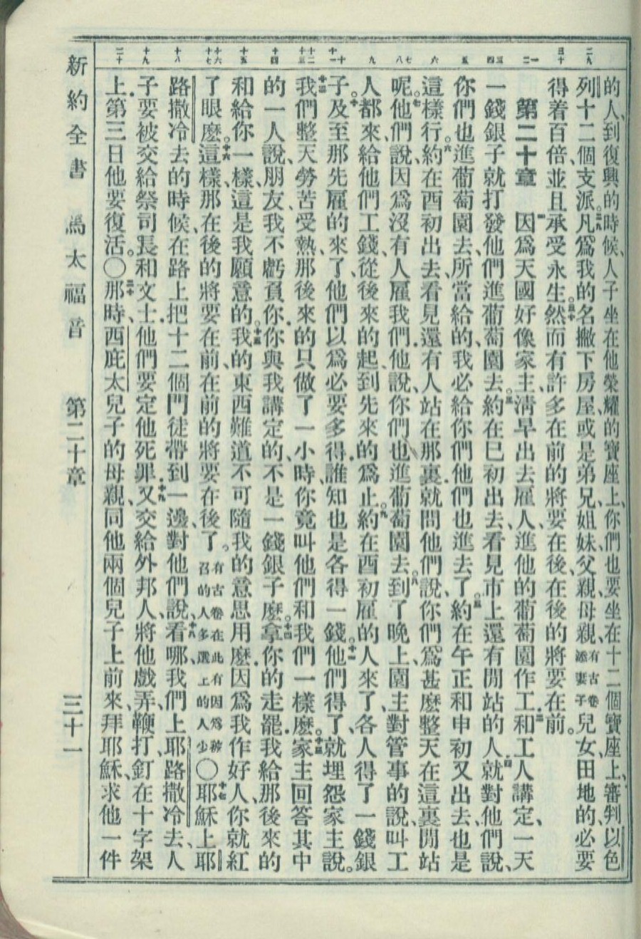 1951年新约全书 马太福音 19 章 29 节到 20 章 20 节