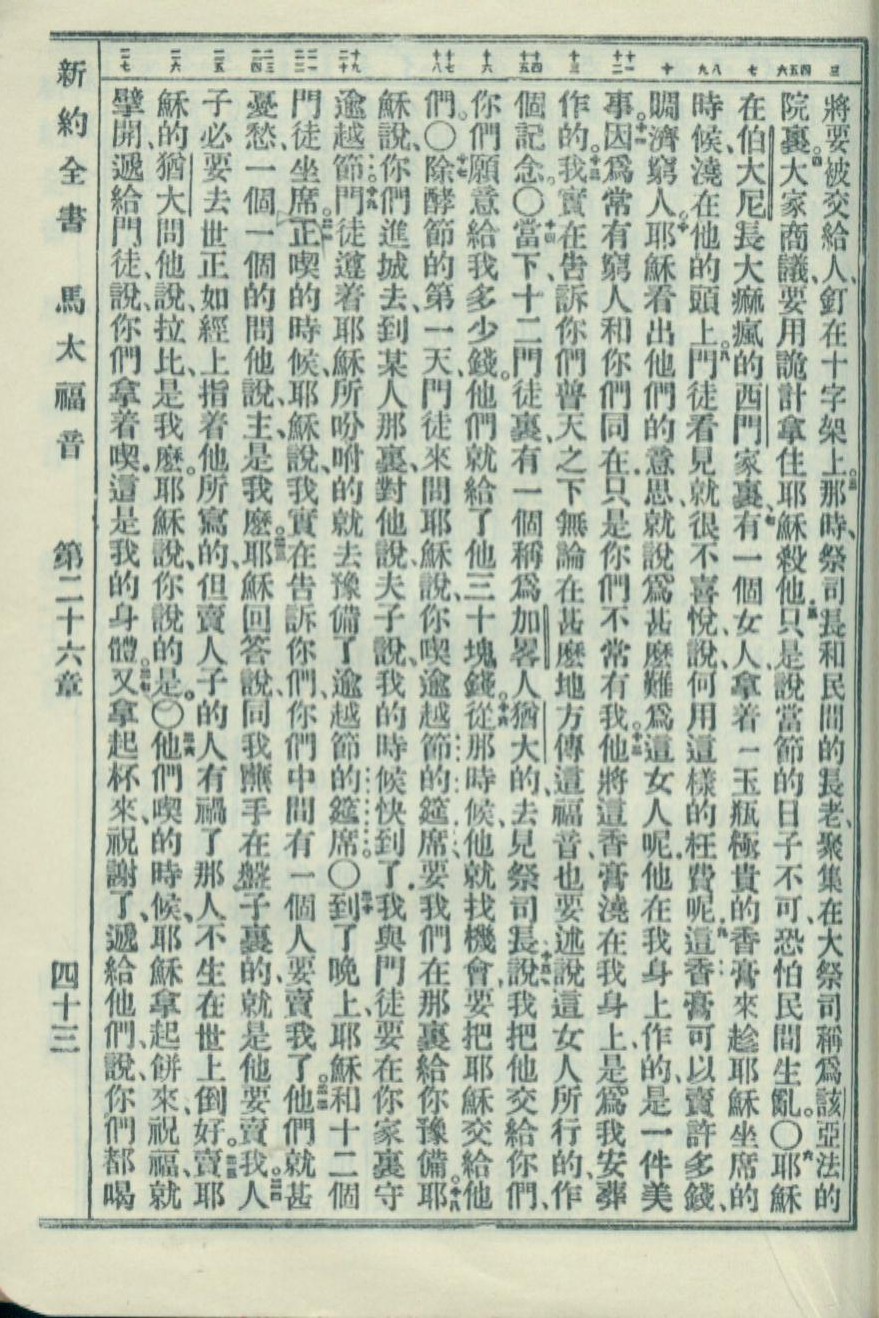 1951年新约全书 马太福音 26 章 3 节到 26 章 27 节